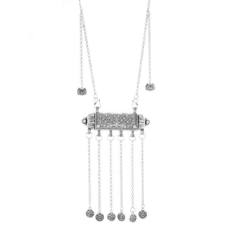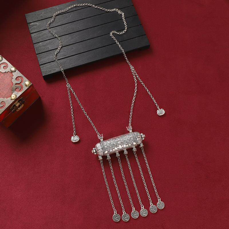民族风长款苗银复古项链古银雕花流苏毛衣链女汉服旗袍新中式配饰