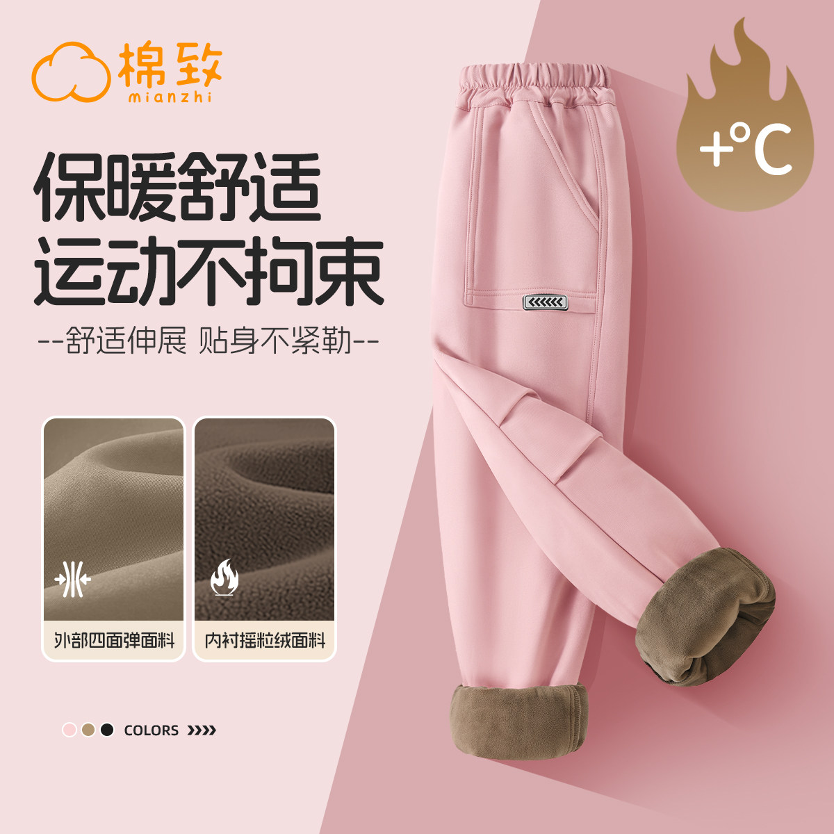 棉致女童加绒裤子工装裤秋冬款2025新款一体绒加厚冬季儿童休闲裤