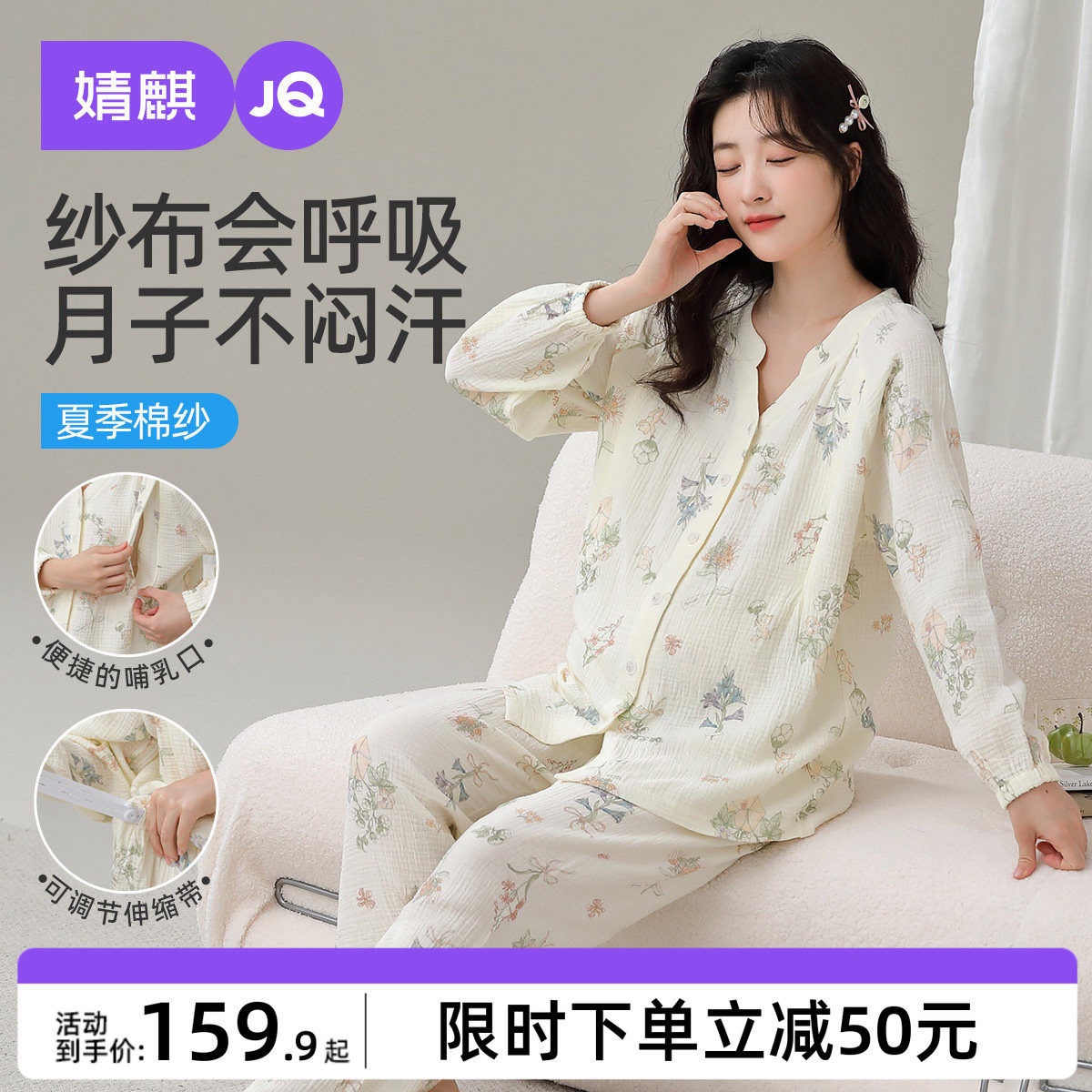 婧麒月子服纯棉纱布孕妇睡衣2025新款夏季薄款产后哺乳衣家居服装