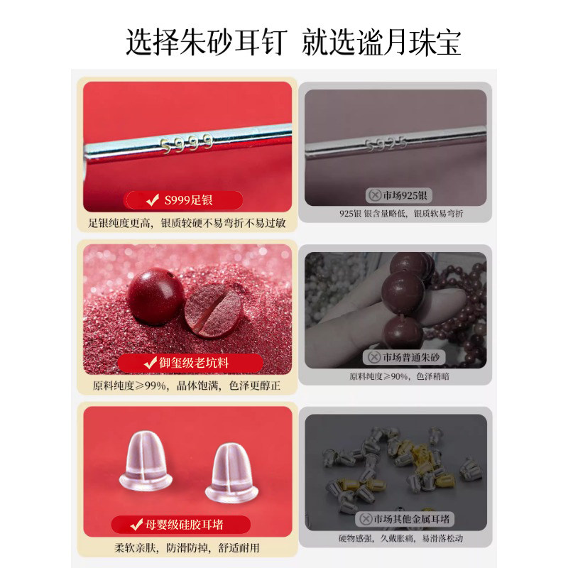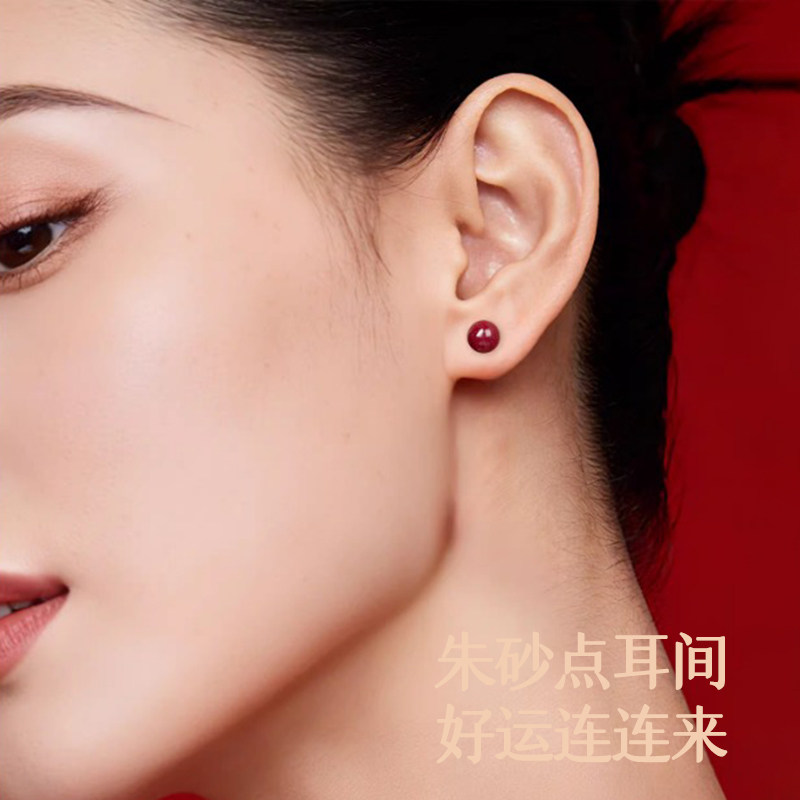 朱砂耳钉999纯银耳饰本命年女2026新款爆款正品官方旗舰店足银