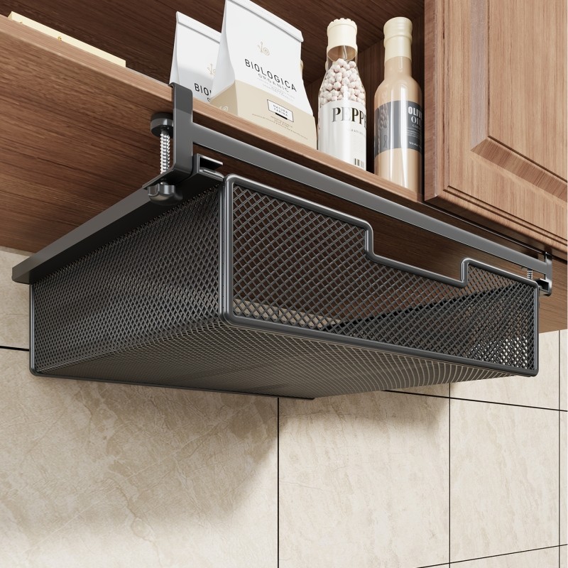 厨房置物架悬挂抽屉式分层架橱柜下拉篮家用导轨镂空储物架壁挂式