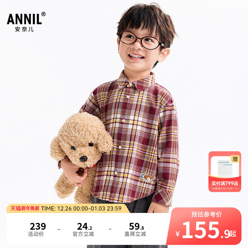 【商场同款】安奈儿童装男童翻领长袖衬衫2025秋新款纯棉XB531158