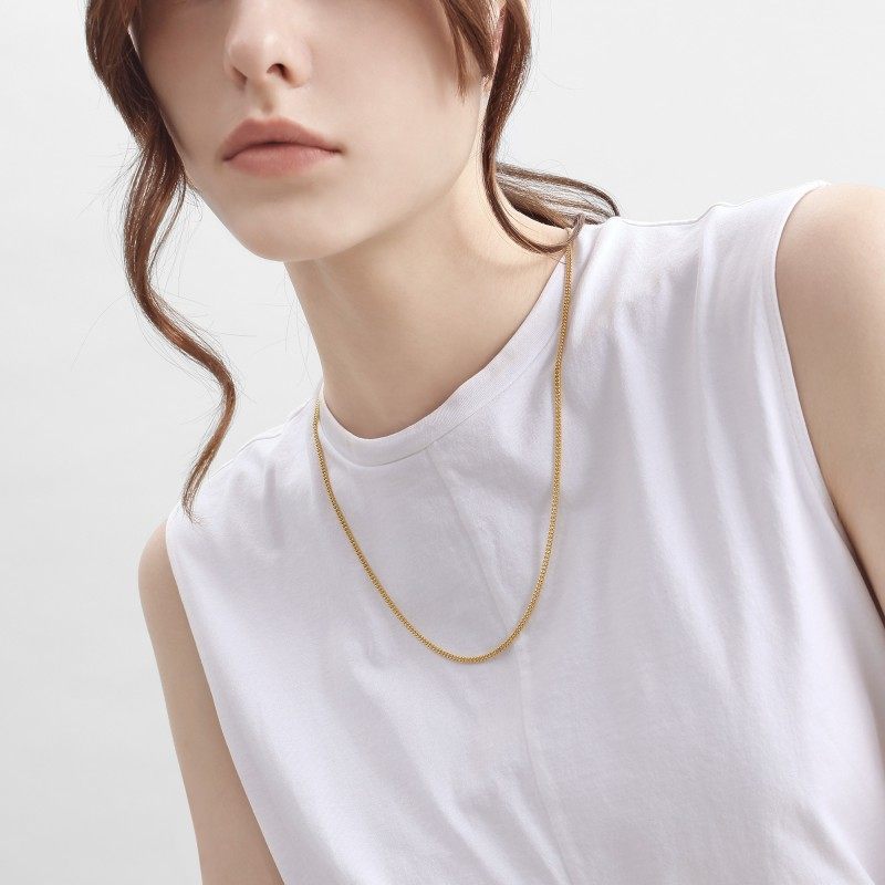 周生生黄金素链侧身链Essence永系列足金项链颈链96000N
