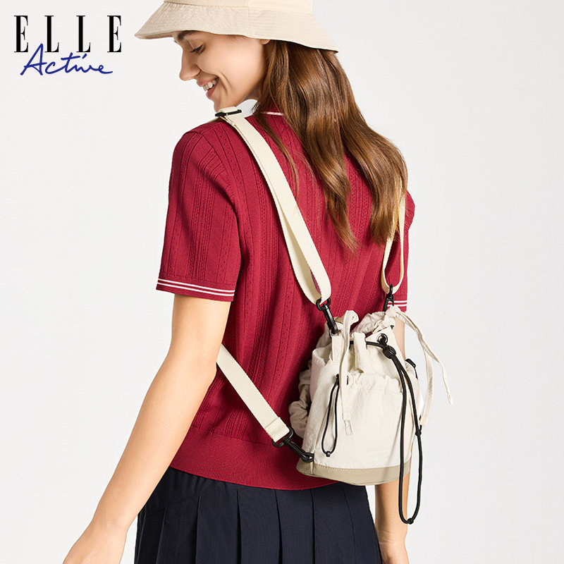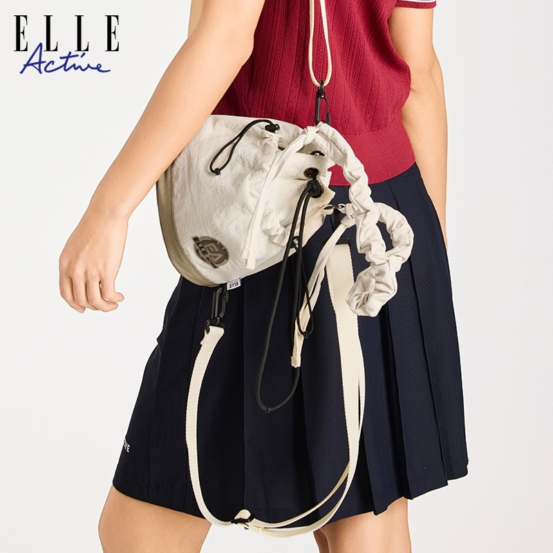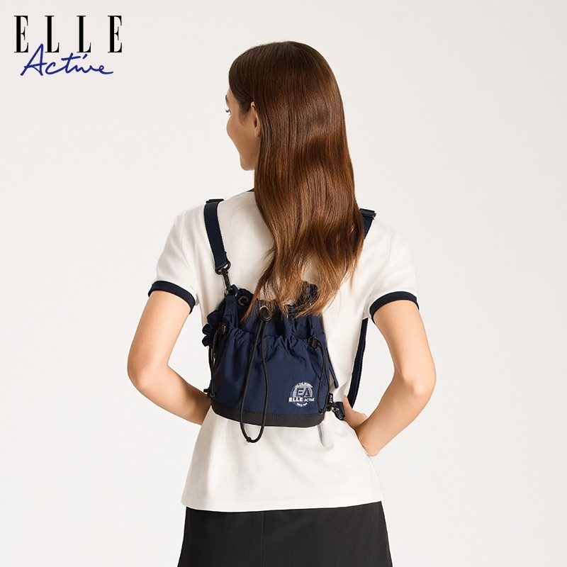 ELLE Active时尚抽绳水桶包运动单肩斜挎包小巧轻便休闲双肩背包