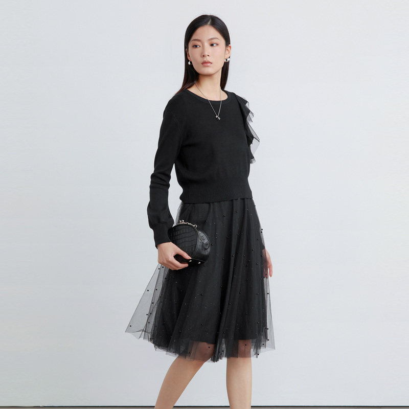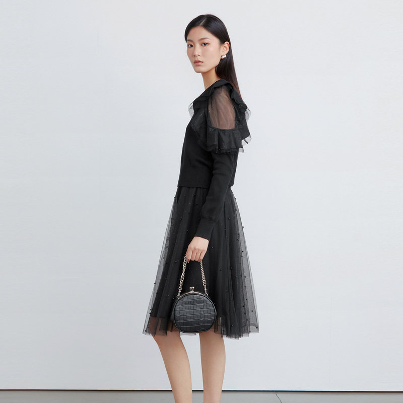 sdeer圣迪奥女装优雅网纱针织衫连衣裙套装S223Z1476