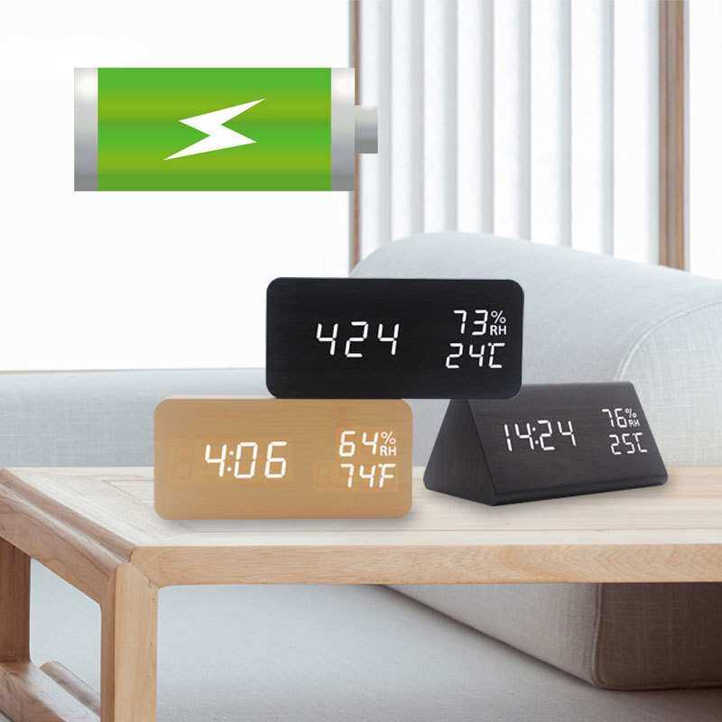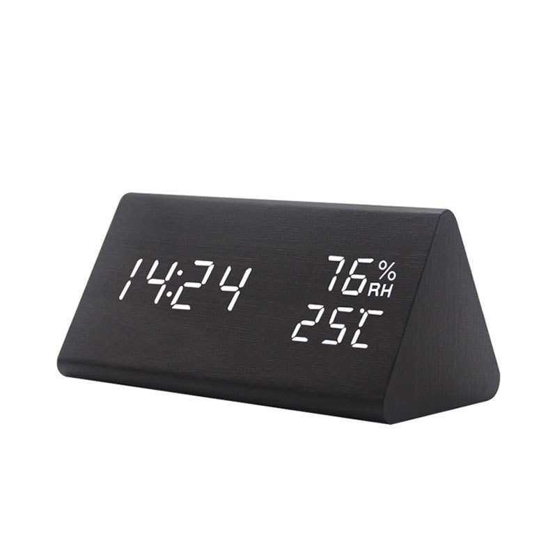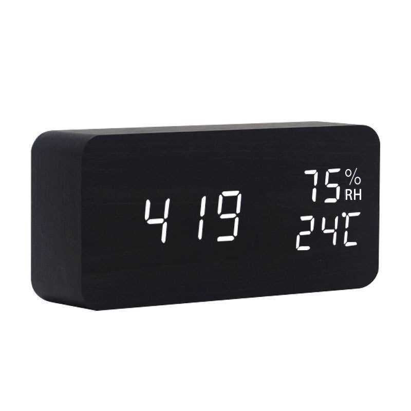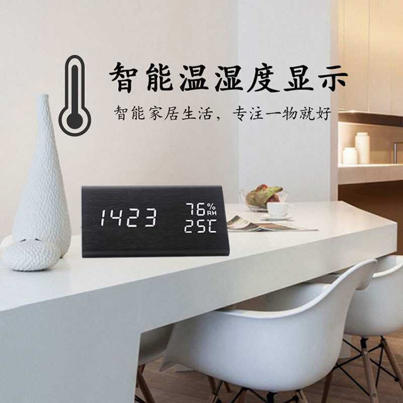 充电LED数字闹钟智能声控夜光温湿度多功能木头座钟 创意装饰