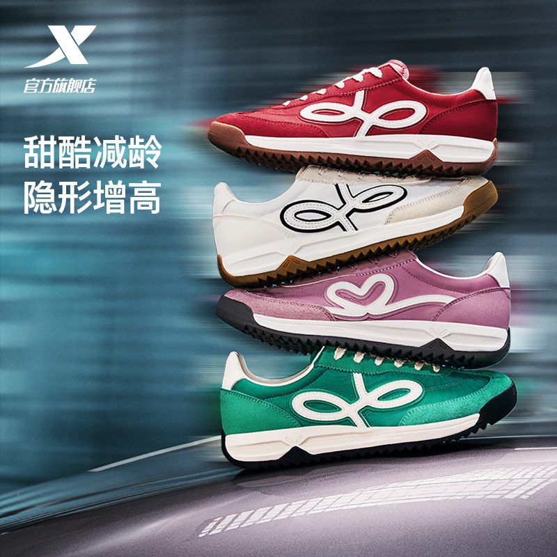 特步新春系列丨小野花休闲鞋女鞋复古德训鞋薄底赛车鞋轻便运动鞋