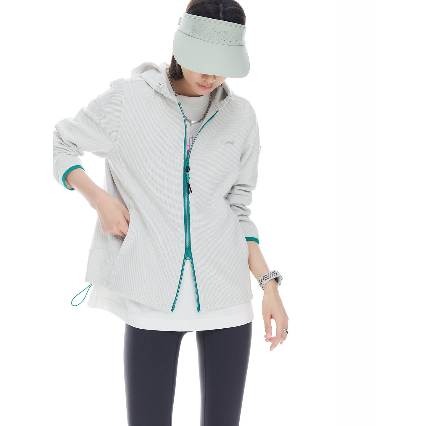 CLOUDSPACE【云禾】华夫格肌理户外正肩连帽拉链外套2026春上衣女