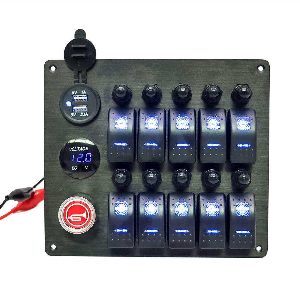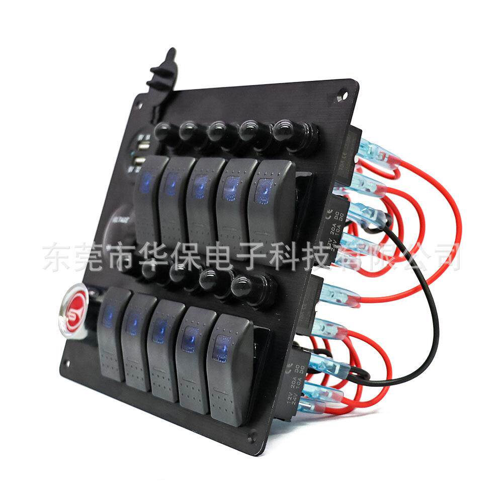 房车控制改装开关10位面板开关组合车充电压表电源母座过载保护