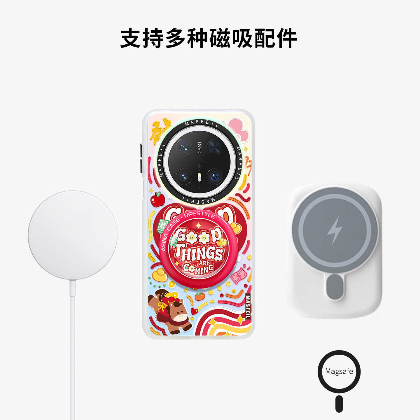 MASFEIL × 涂鸦小马适用华为Mate80Promax手机壳磁吸带支架mate60保护套新年红色可爱mt70por+新款高级全包