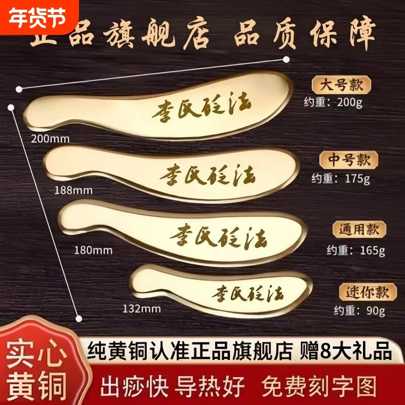 李氏砭法黄铜刮痧板纯铜背部刮全身通用虎符砭刮痧刀面部经络牛角