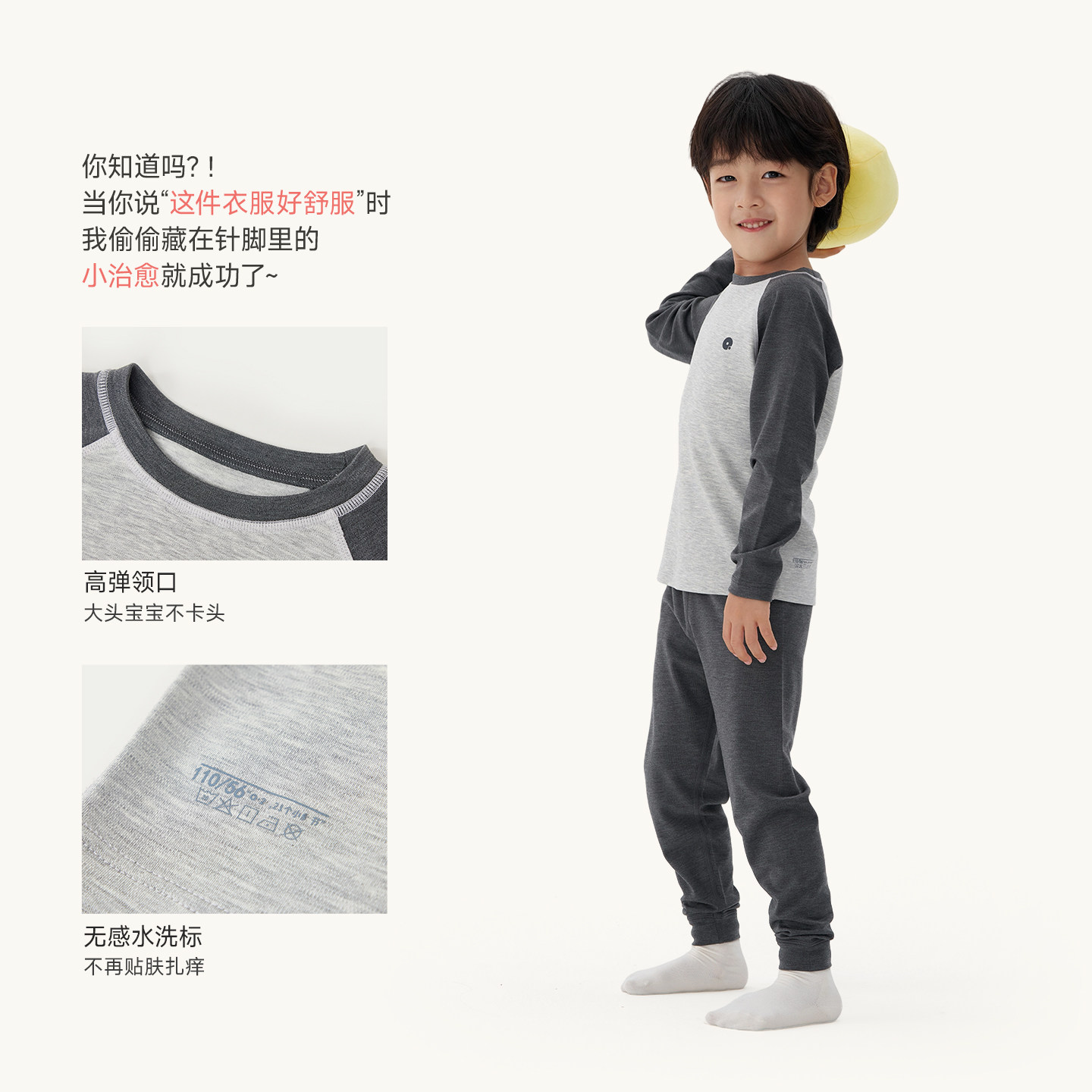 【中暖】Q21小暖皮山茶油儿童秋衣套装圆领男女童A类发热保暖内衣