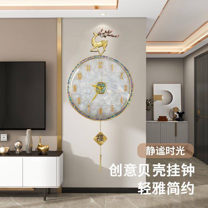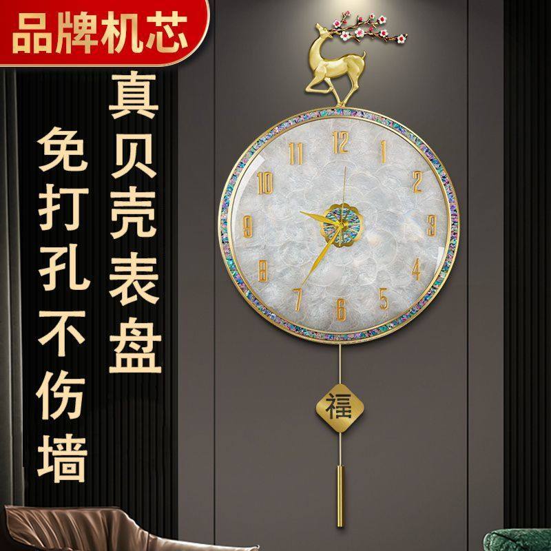 轻奢贝壳2025挂钟客厅黄铜挂钟贝壳挂钟卧室时钟高档钟表法式挂钟