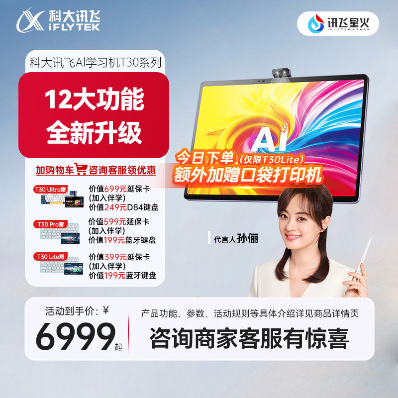 【买贵退差】科大讯飞人工智能学习机T30 ProAI答疑辅导护眼小学初中高中学习机旗舰店
