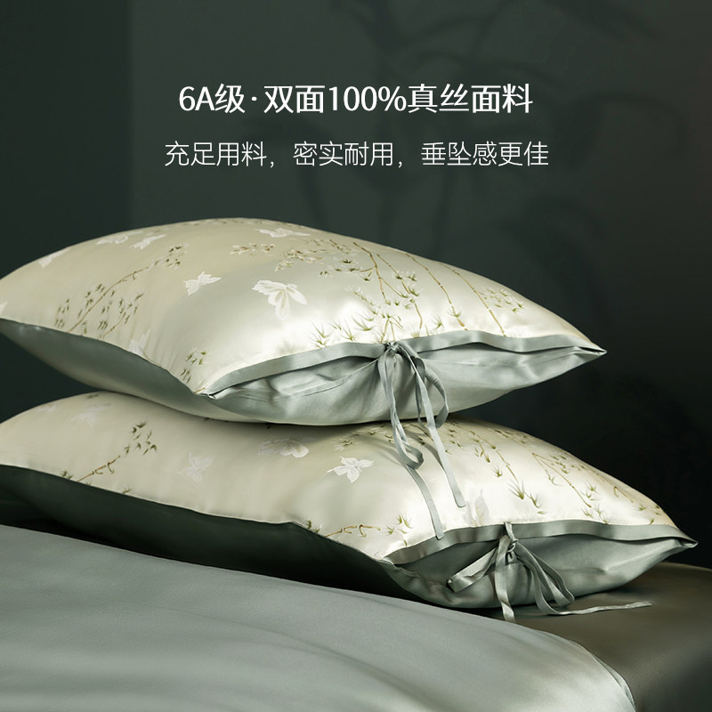 高端国风真丝枕套桑蚕丝48cmx74cm枕芯内胆套单个家用枕头套亲肤
