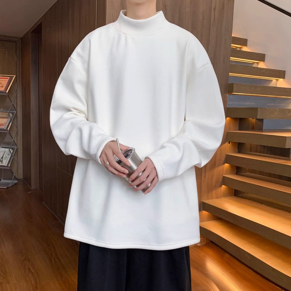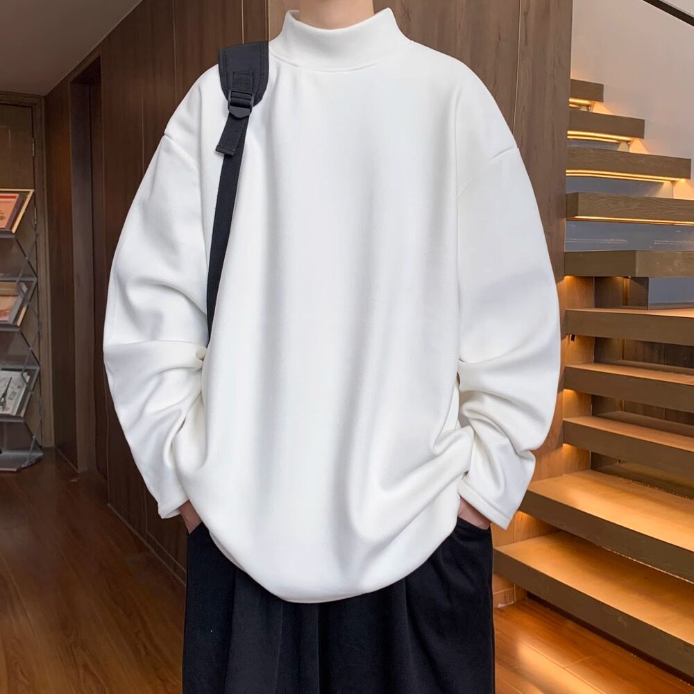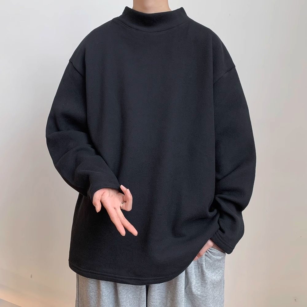 半高领德绒长袖T恤男款2025新款秋冬宽松大码打底衫内搭纯色上衣