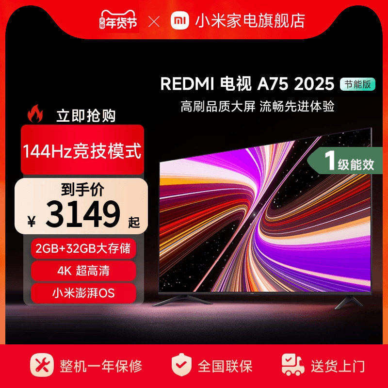 小米REDMI A75英寸144Hz高刷高清平板液晶电视机以旧换新补贴2025