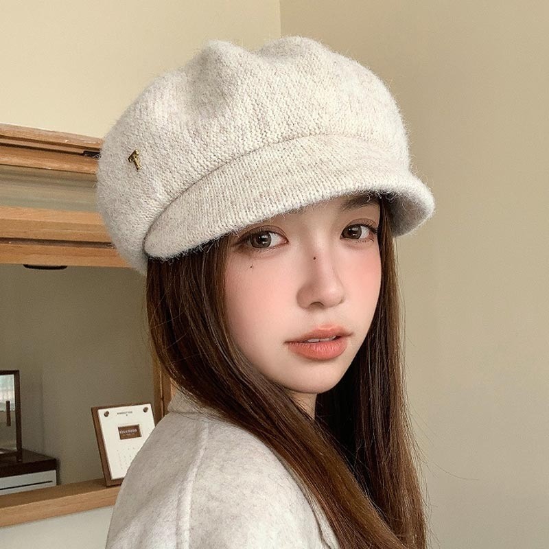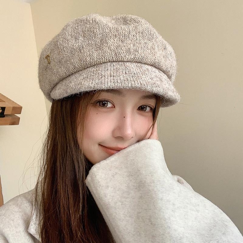 全新升级款纯色复古风贝雷帽子女保暖显脸小时尚百搭报童帽鸭舌帽