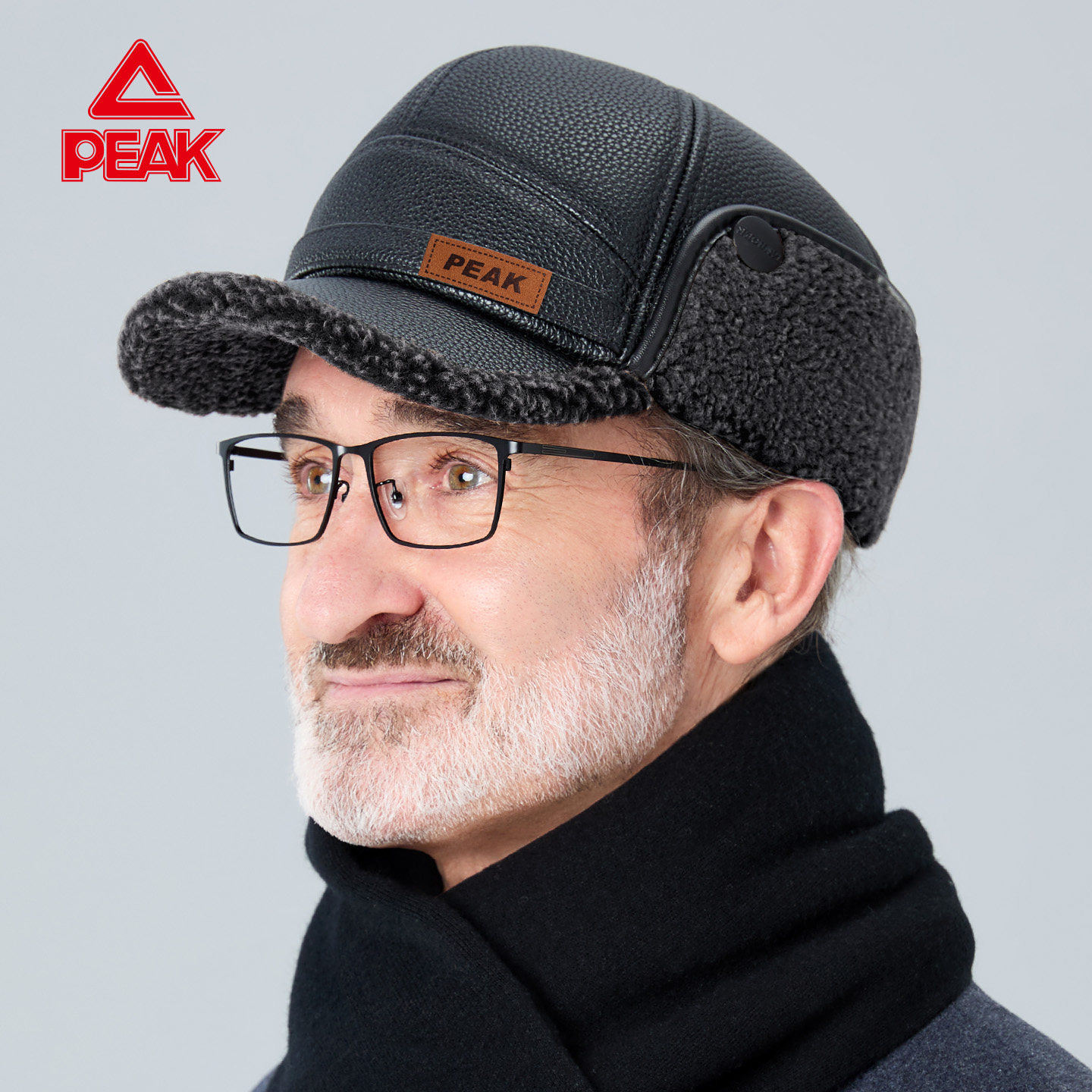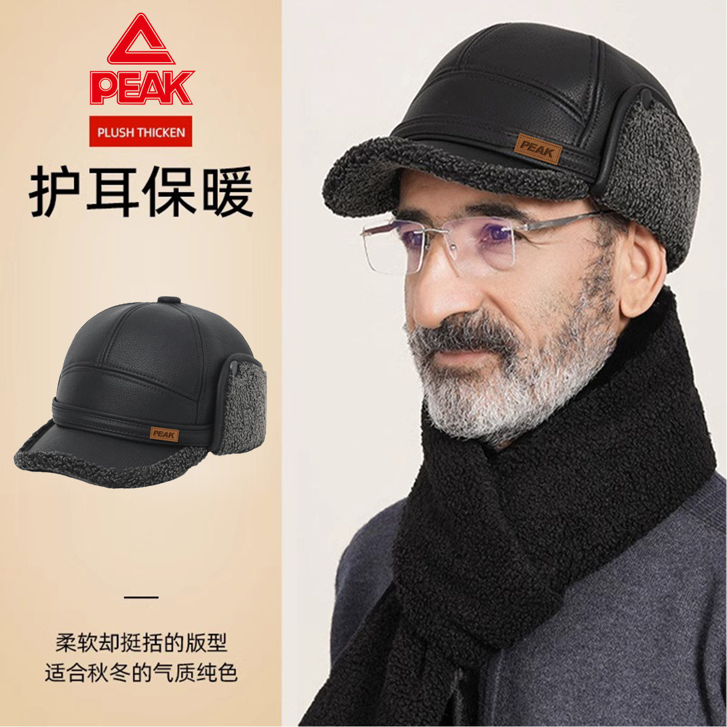 匹克帽子男士爸爸冬季护耳帽保暖鸭舌帽中老年人皮帽子加厚雷锋帽