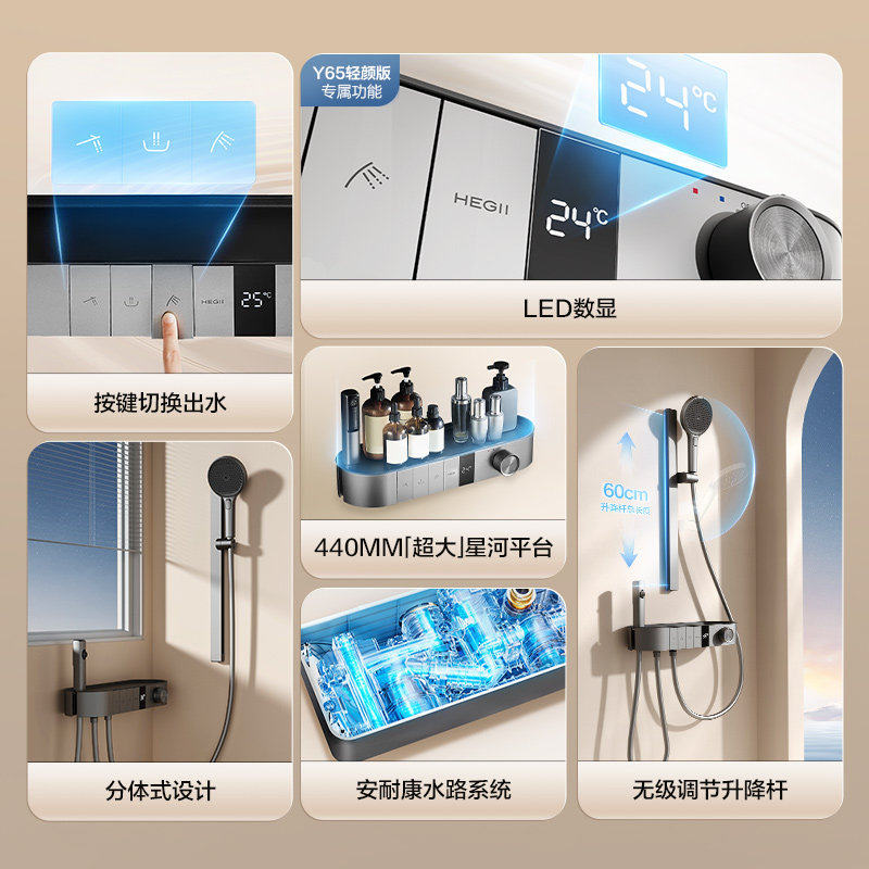 恒洁花洒淋浴花洒套装钢琴按键温度数显分体式淋浴花洒套装卫生间