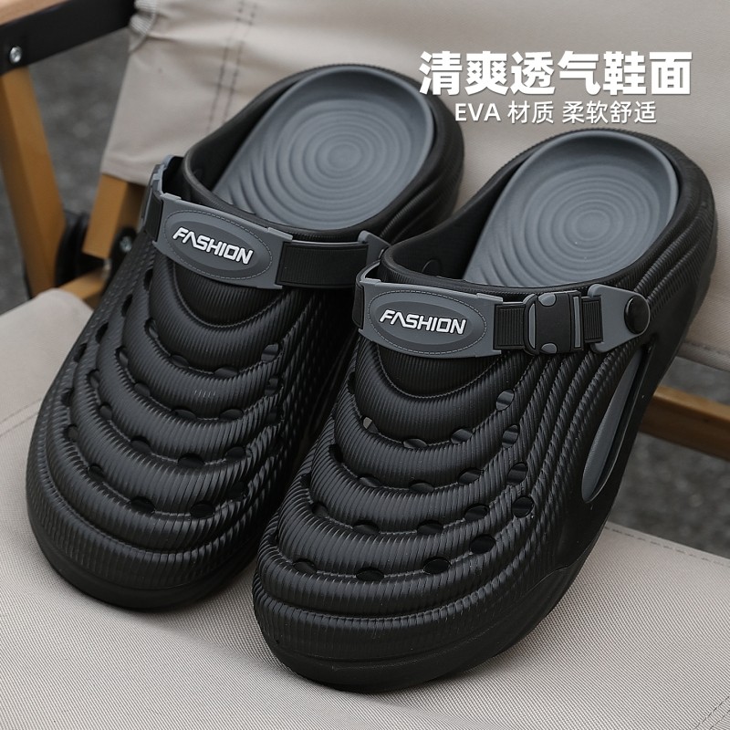 踩屎感洞洞鞋男款夏季外穿厚底防滑防臭沙滩凉鞋运动开车包头拖鞋