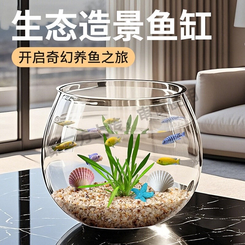 桌面小鱼缸新款斗鱼缸家用仿玻璃一体成型金鱼缸小型客厅圆形鱼缸