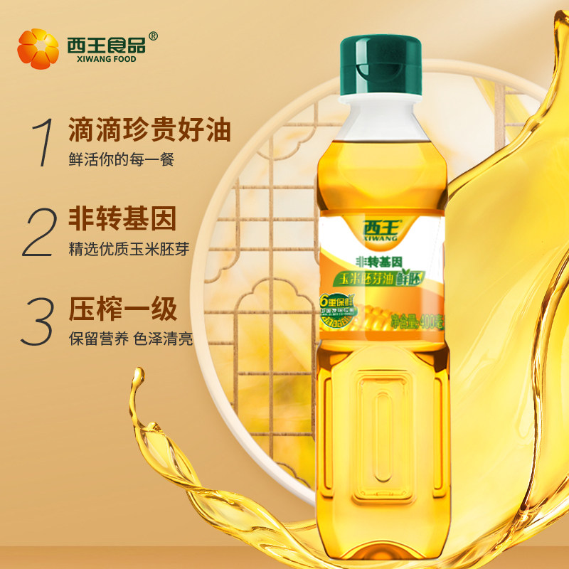 西王鲜胚玉米胚芽油400ML*1瓶非转基因物理压榨食用油黄金