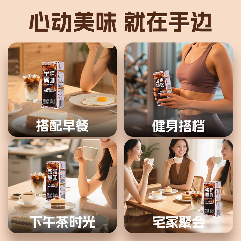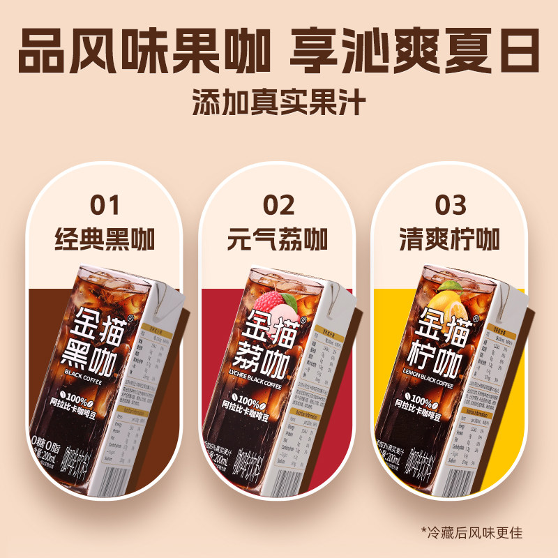 金猫咖啡即饮黑咖饮料冰美式果咖0脂肪保质期盒装便捷宅家经典
