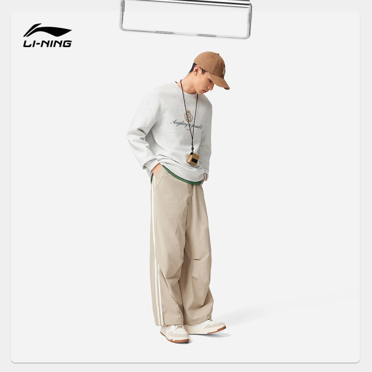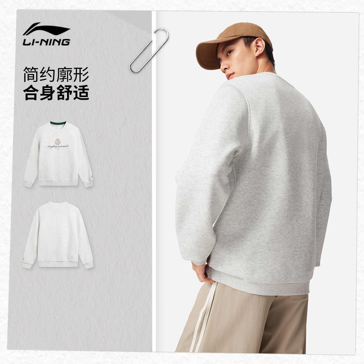 李宁卫衣男春季2026新款宽松套头衫长袖圆领上衣男休闲针织运动服