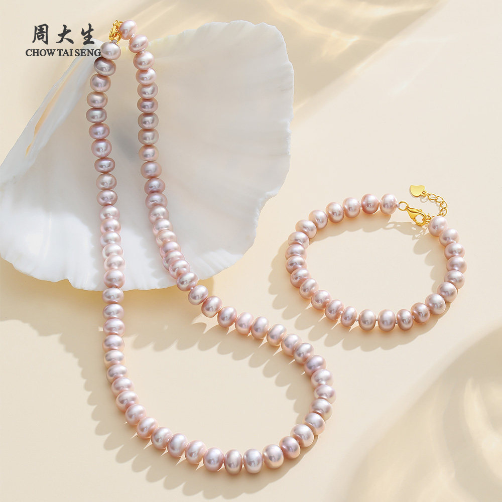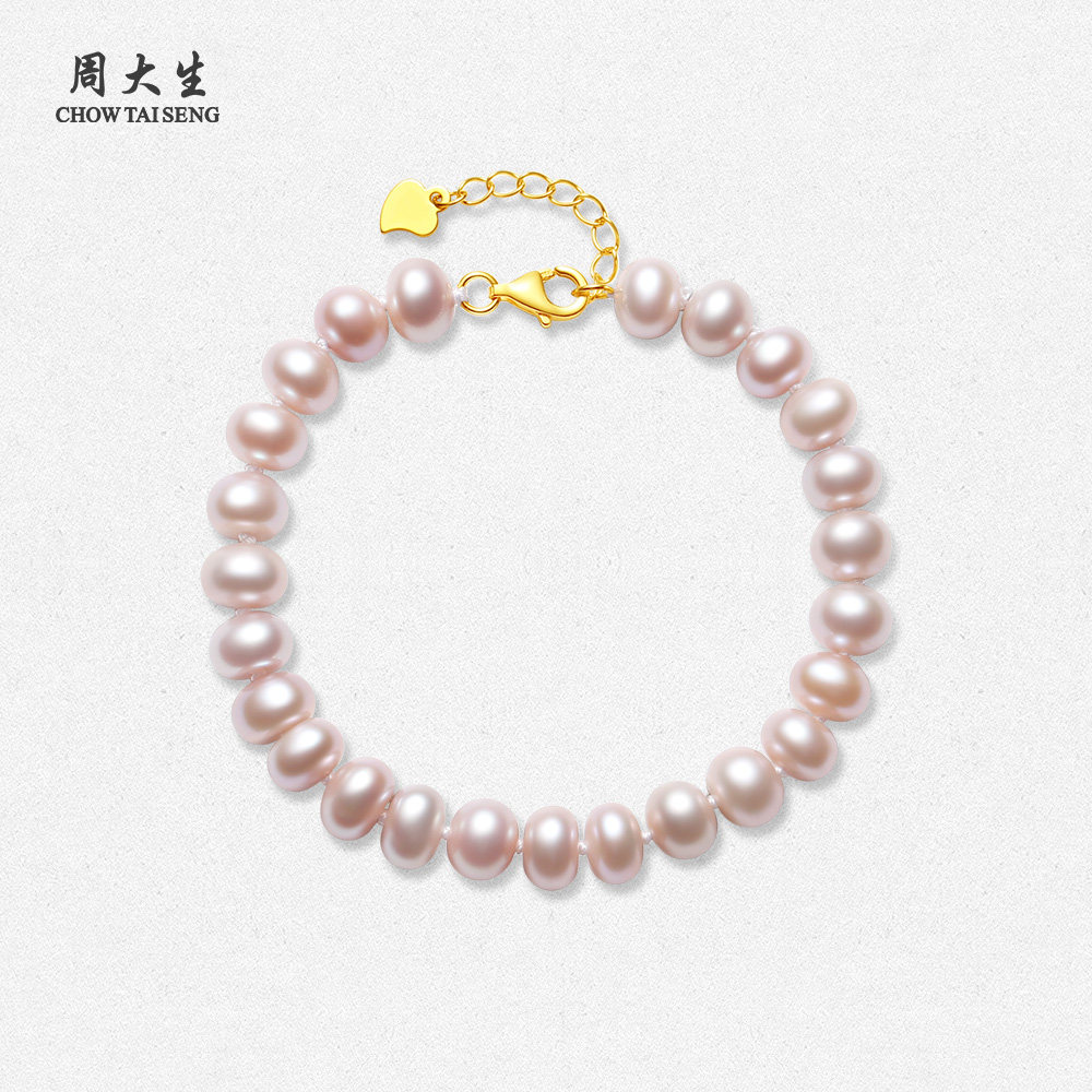 周大生淡水珍珠手链银紫色系扁圆珠链手串手饰女神生日礼物送妈妈