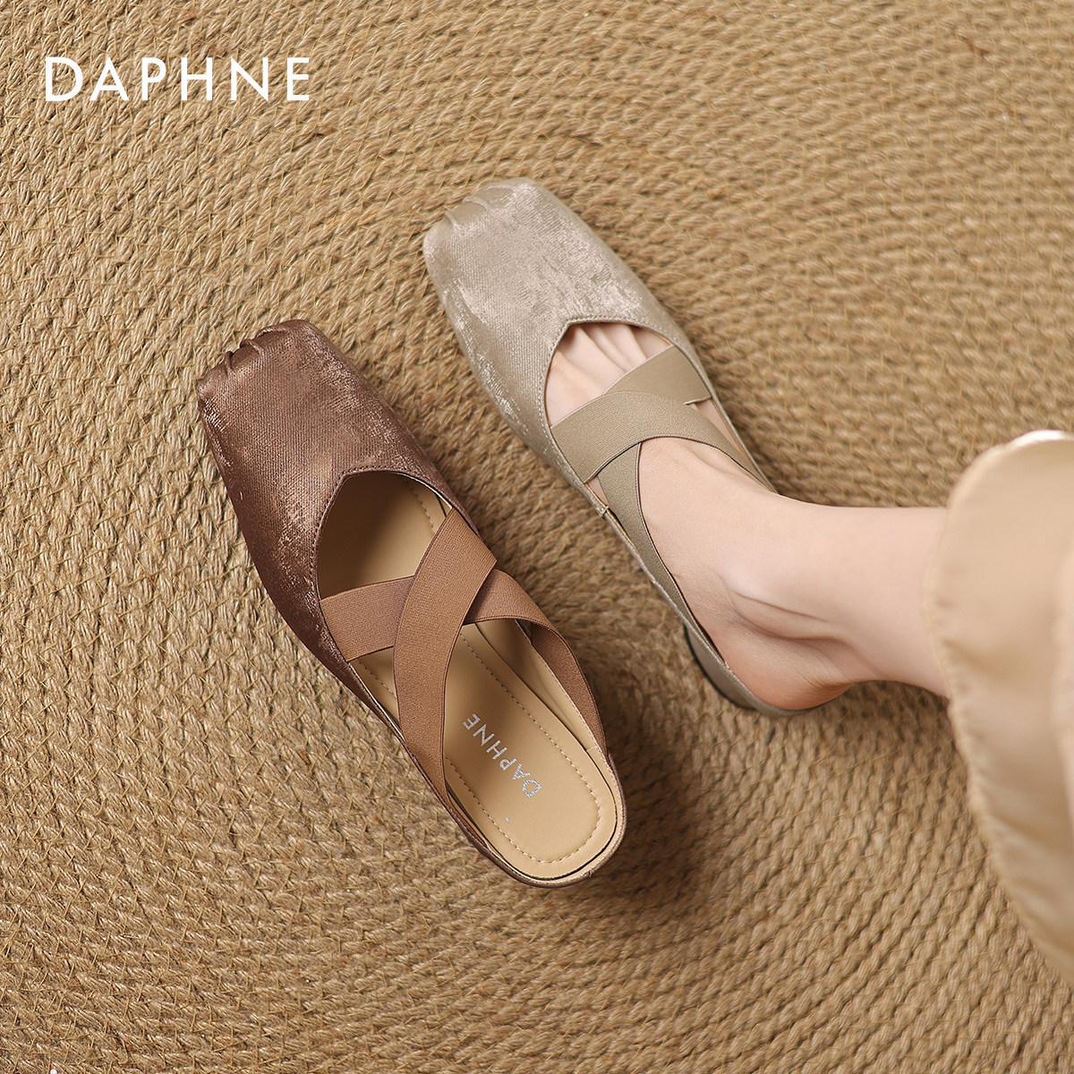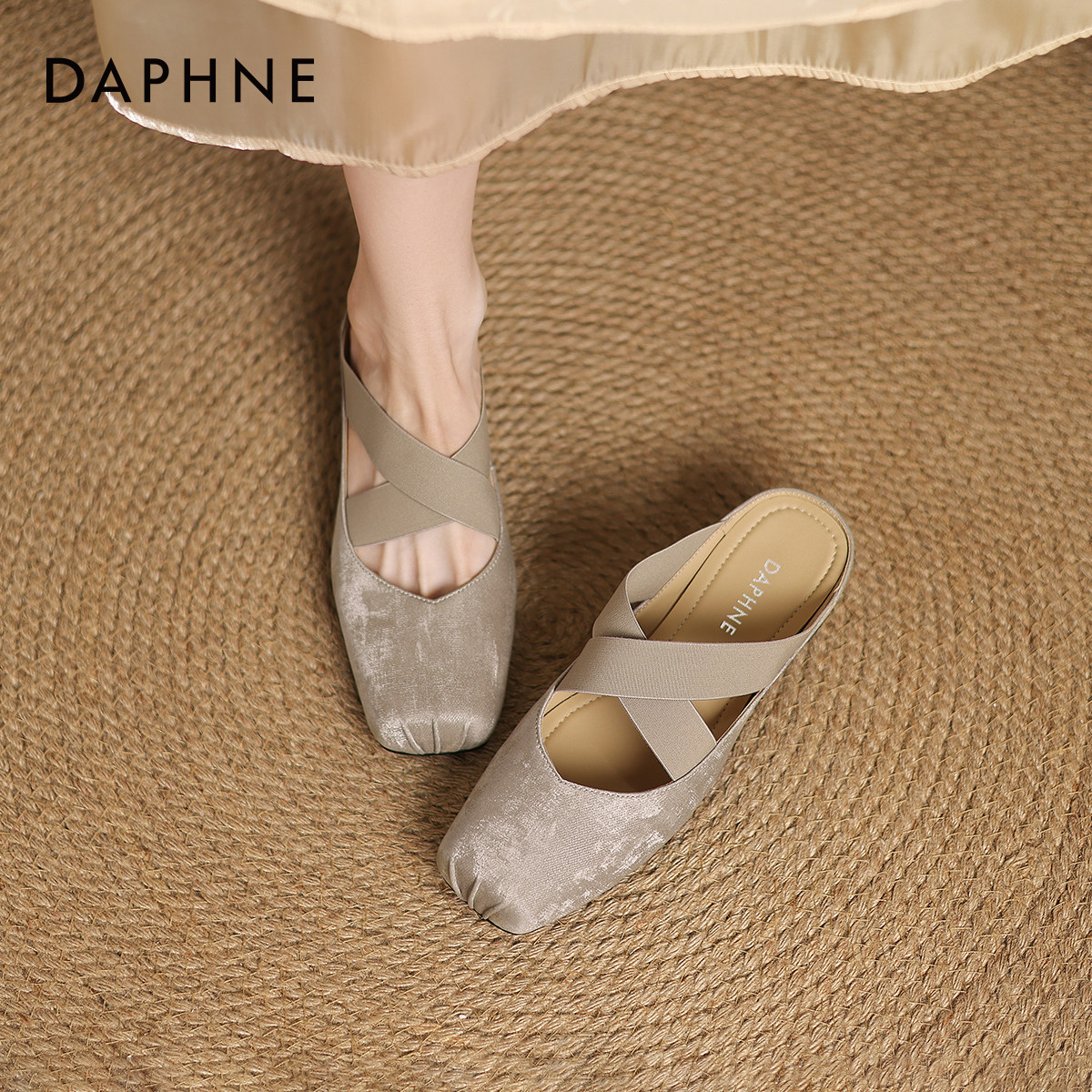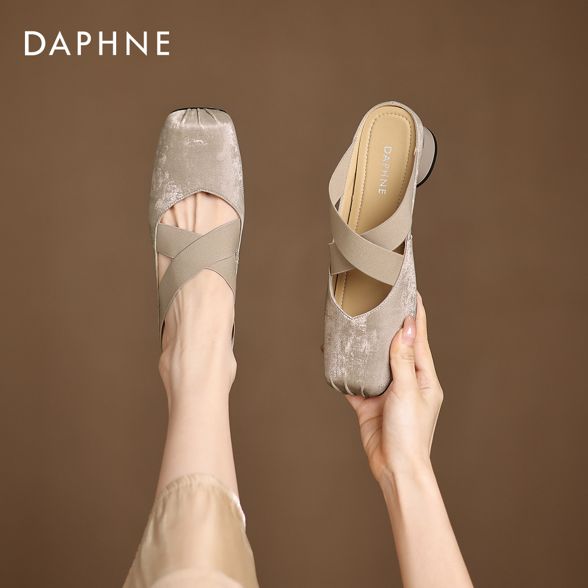 达芙妮玛丽珍鞋女2025新款猪鼻子芭蕾舞鞋夏季粗跟懒人包头拖鞋女