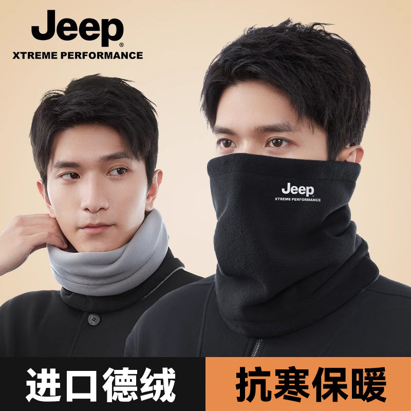 jeep吉普男士保暖围脖冬季户外骑车防风护颈脖套电动车加绒男围巾