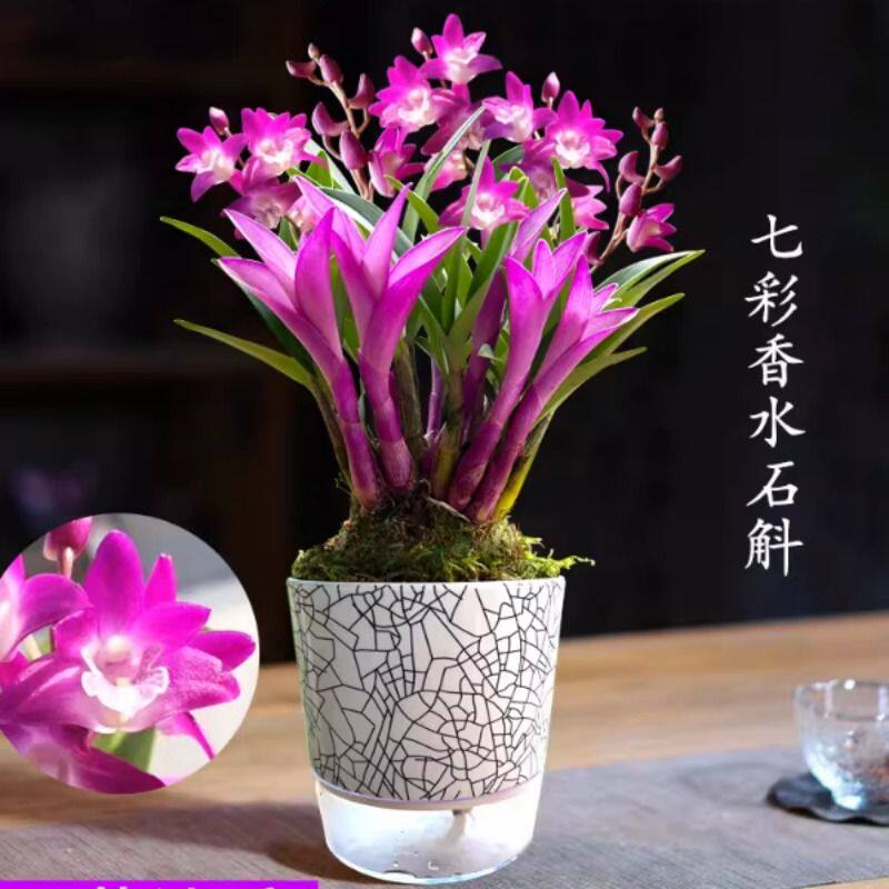 冬带花七彩香水石斛兰花四季好养绿植石斛净化空气客厅开花水培