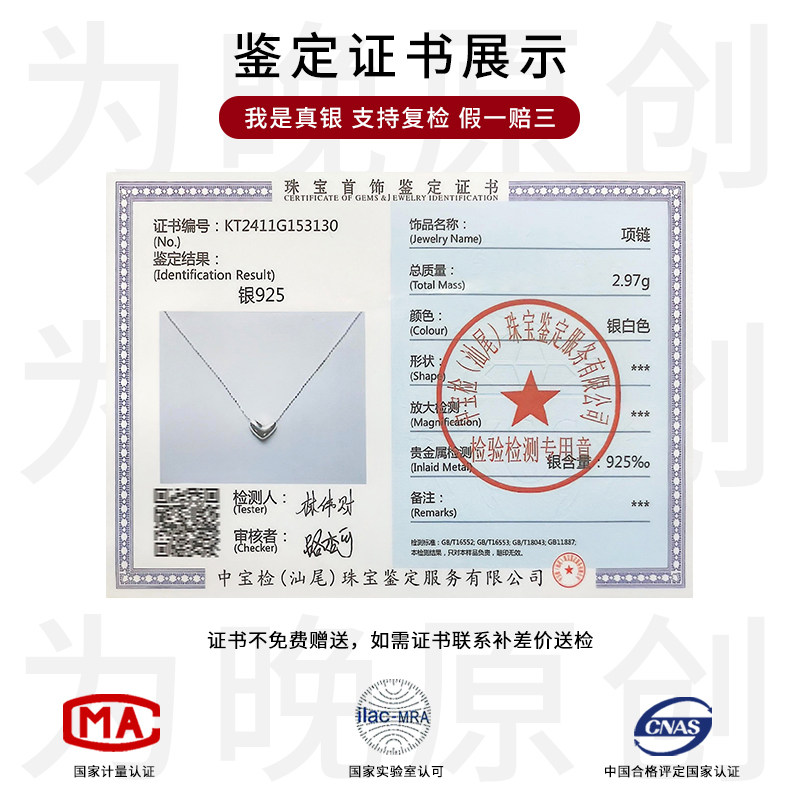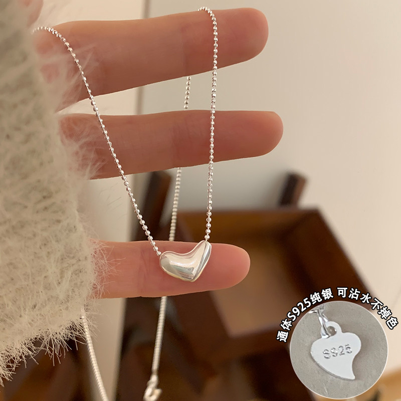 为晚纯银爱心项链学生党简约百搭饰品女高级感气质锁骨链时尚颈链