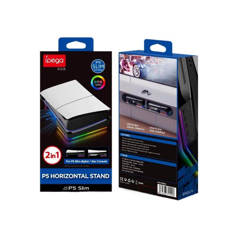 PS5 pro/slim主机收纳架带4个USB接口RGB炫彩灯便携式支架配件