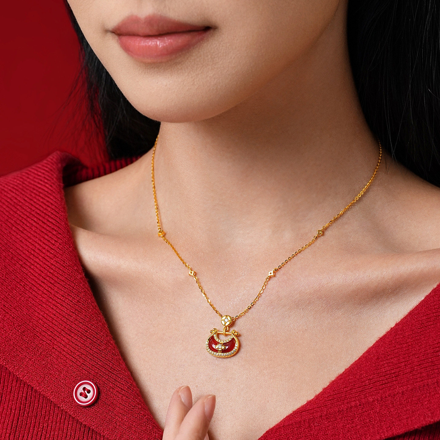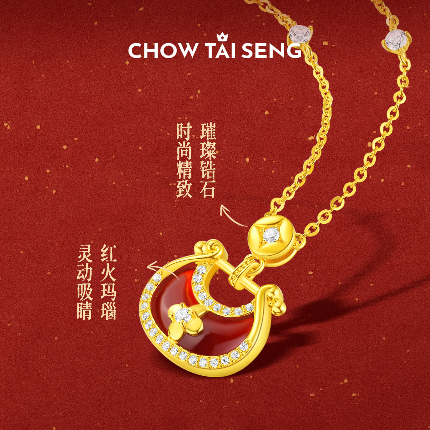 周大生腰缠万贯玛瑙项链S925纯银轻奢高级感锁骨链生日礼物送妈妈