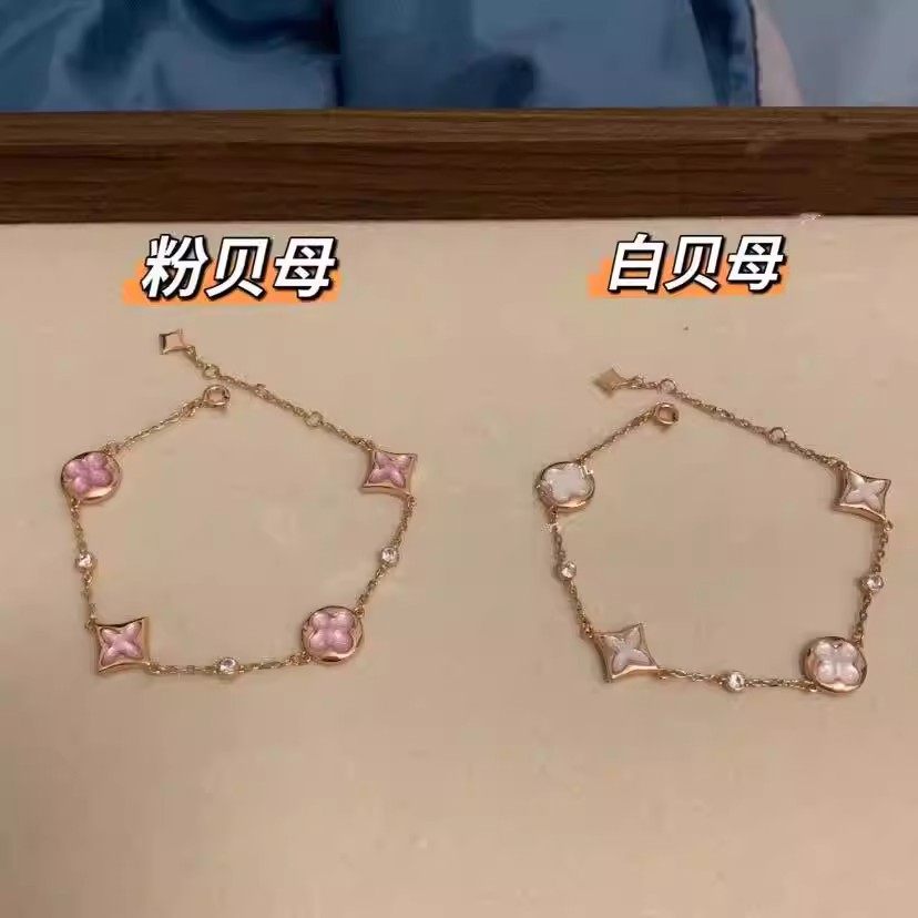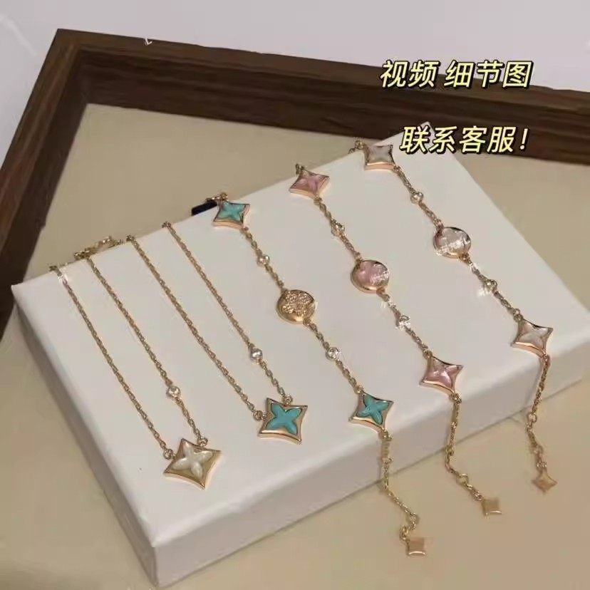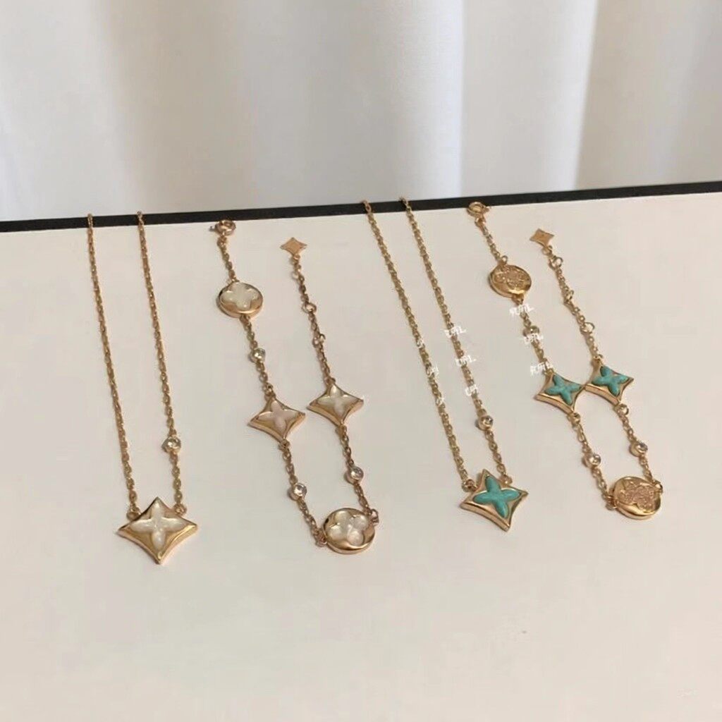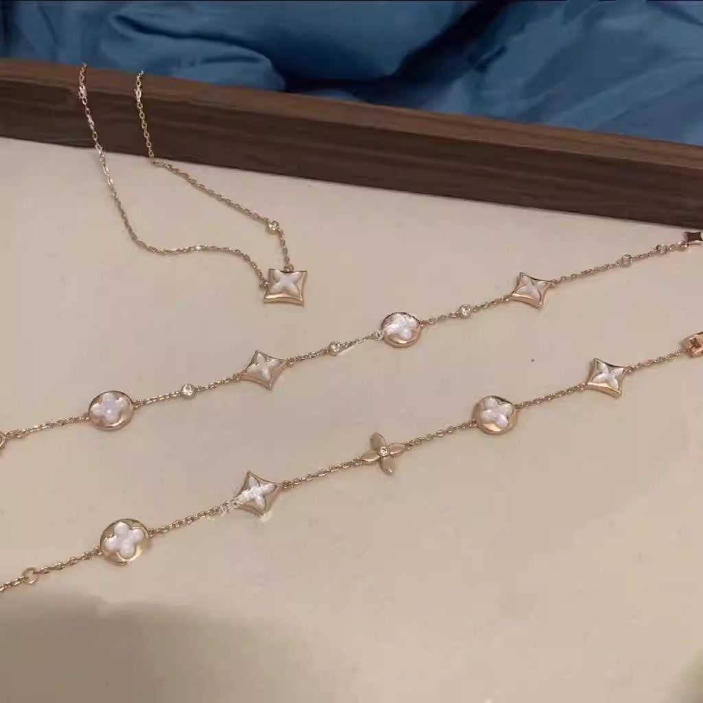 高版本菱形贝母项链纯银18K五花四叶草手链轻奢耳钉戒指套装黄金