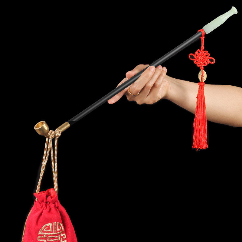 老式传统烟斗旱烟杆黄铜烟锅实木烟杆男士加长玉石烟嘴杆烟具配件