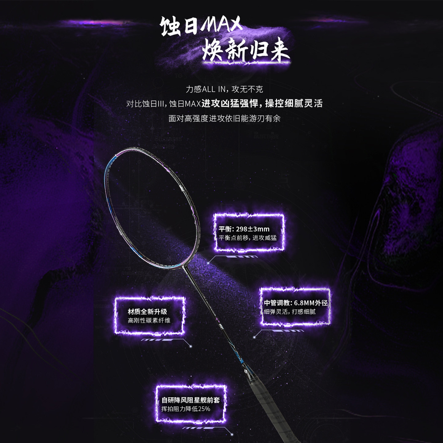 熏风蚀日MAX羽毛球拍超轻全碳素纤维4U 男女专业比赛进攻单拍正品