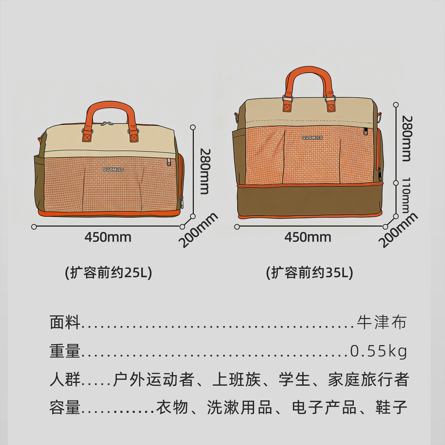 可扩容短途旅行袋女大容量行李包轻便斜挎手提包男运动健身包收纳