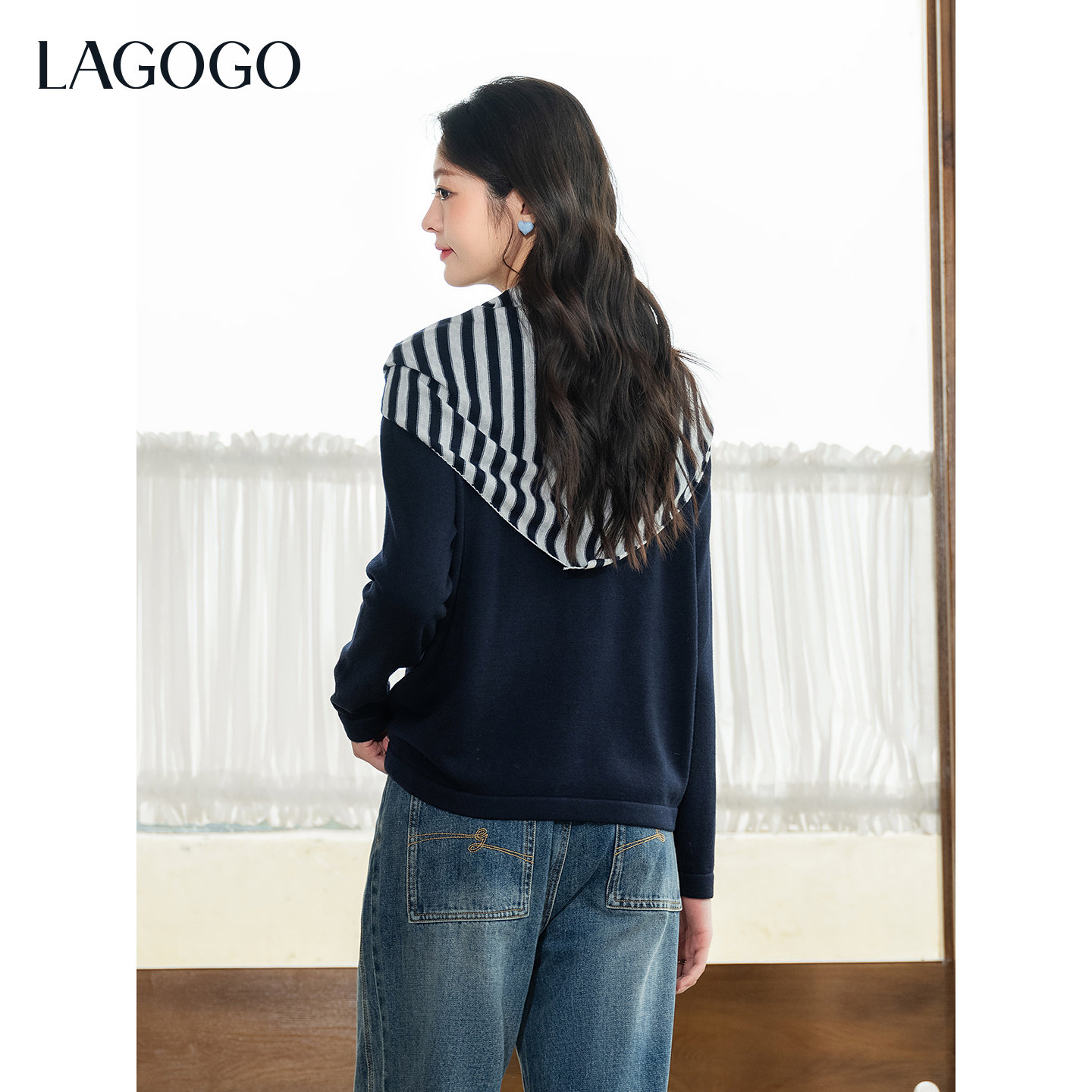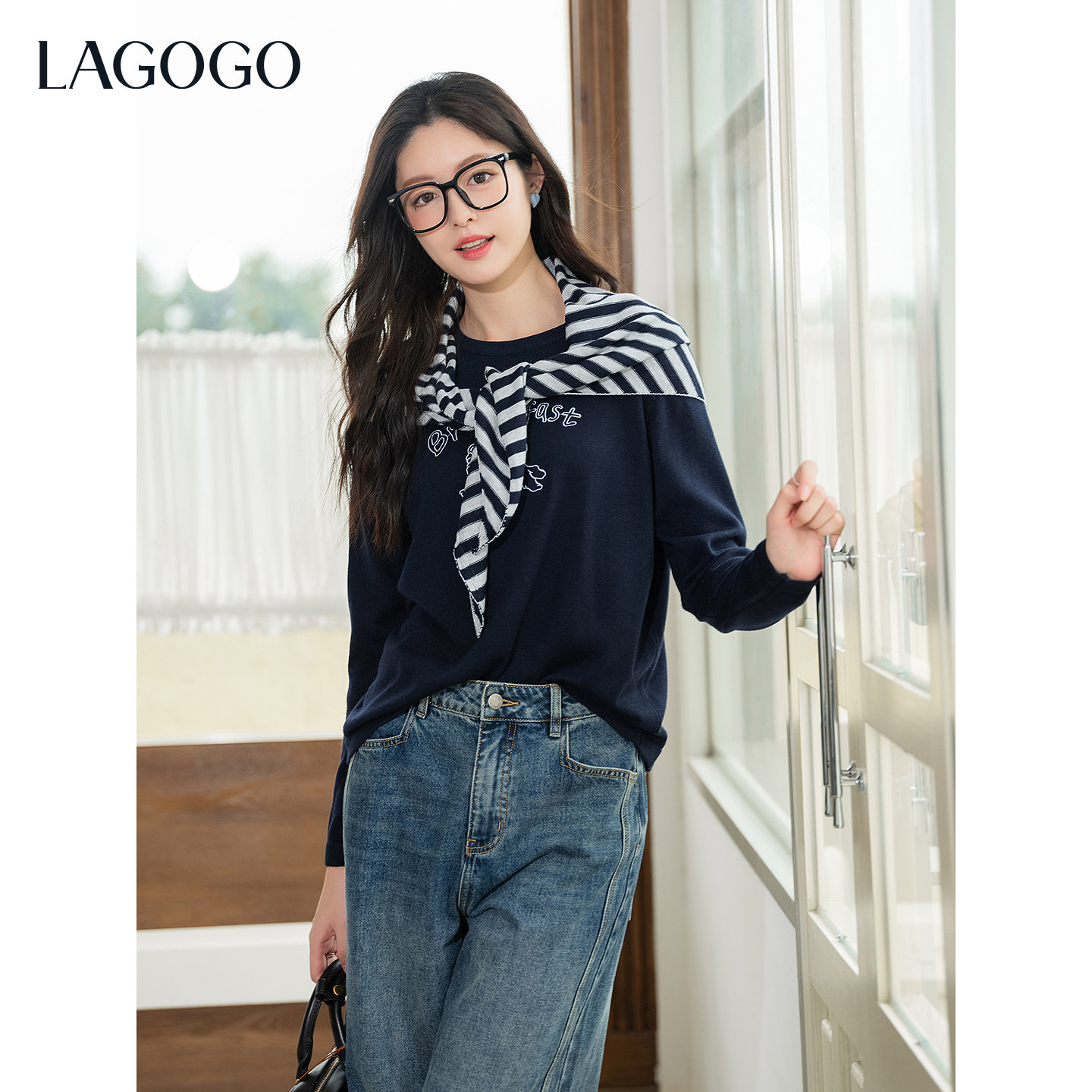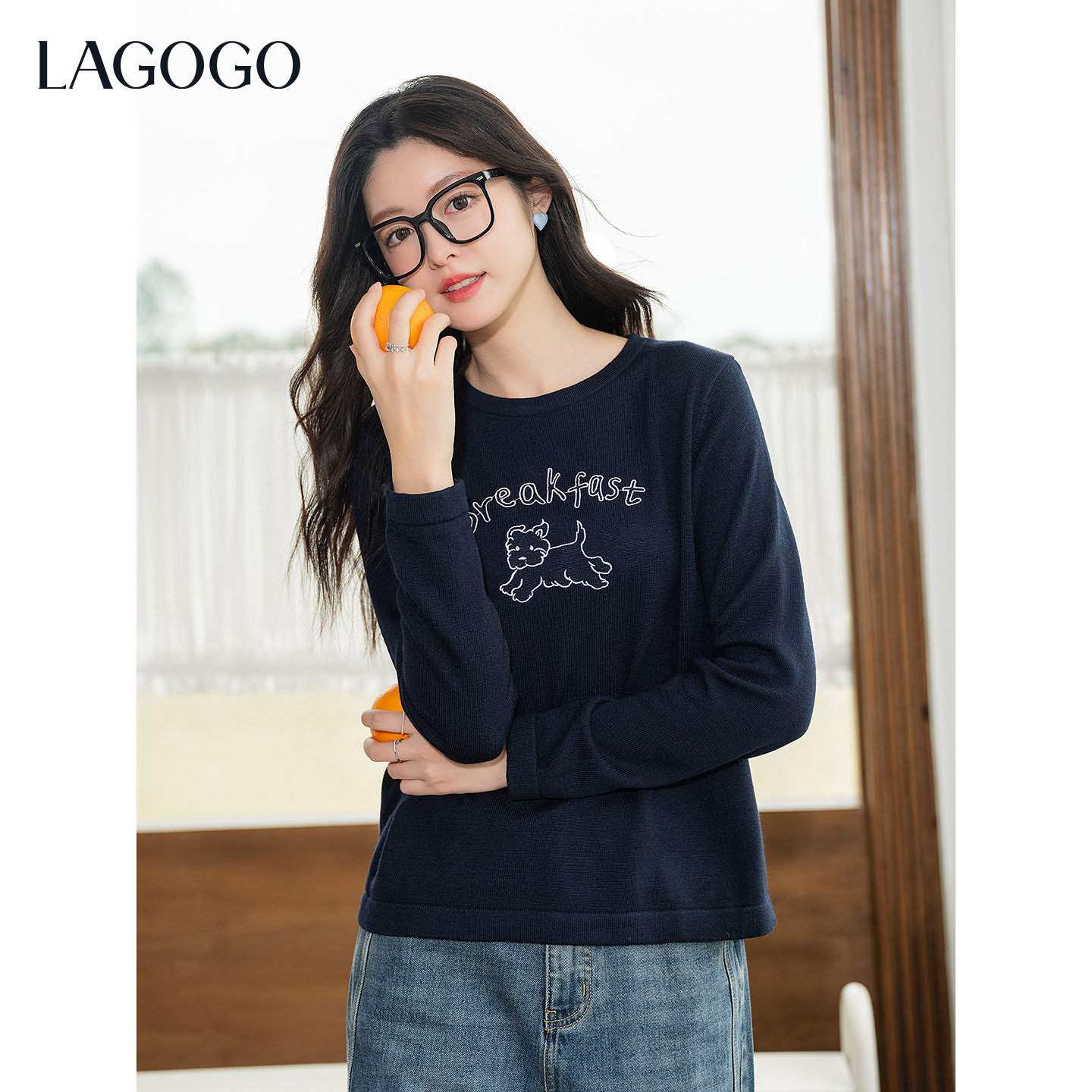 LAGOGO小狗日志针织衫披肩两件套女拉谷谷早春新款叠穿刺绣毛衣