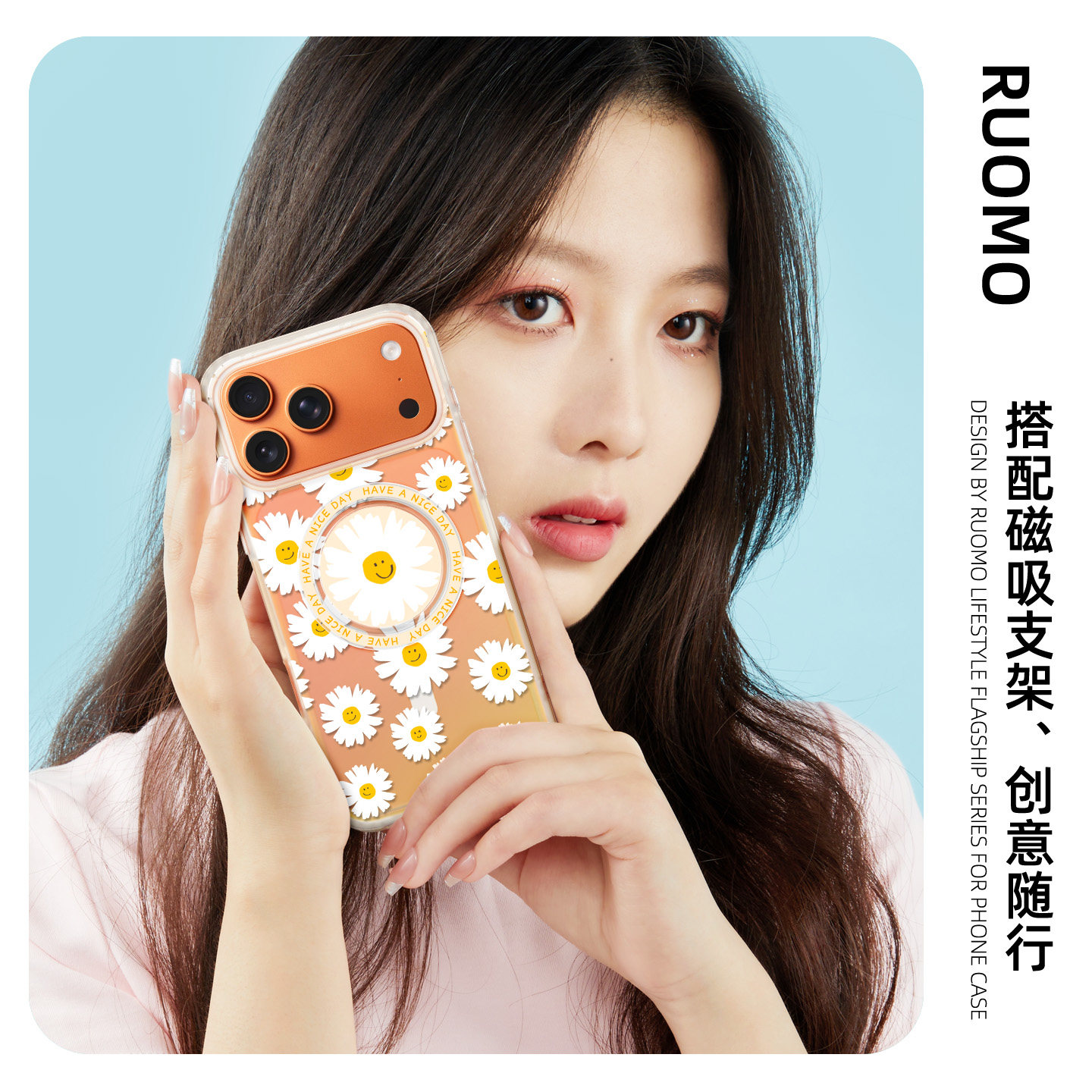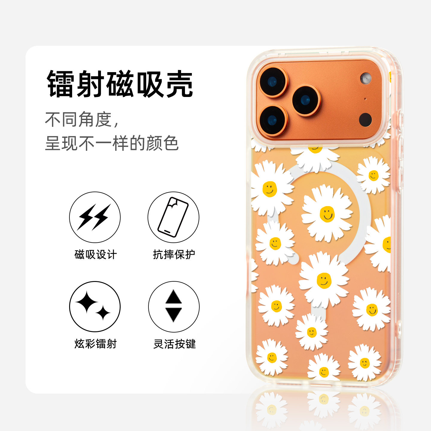 若墨适用苹果17promax手机壳新款iphone16pro女磁吸15镭射14带挂绳原创13春天清新小雏菊12好看独特保护套