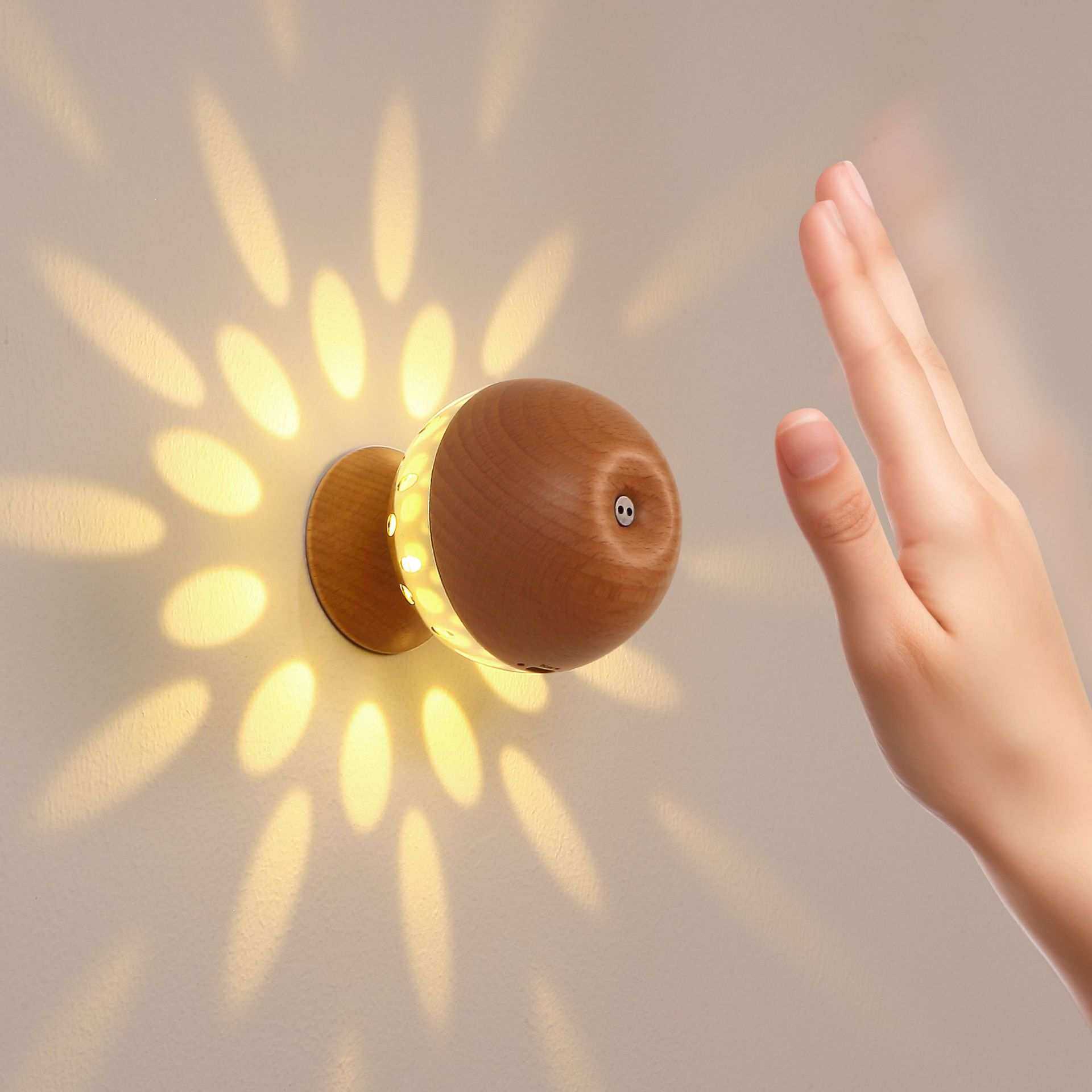 新品感应卧室床头灯简约创意通道走廊楼梯灯实木智能手控感应壁灯