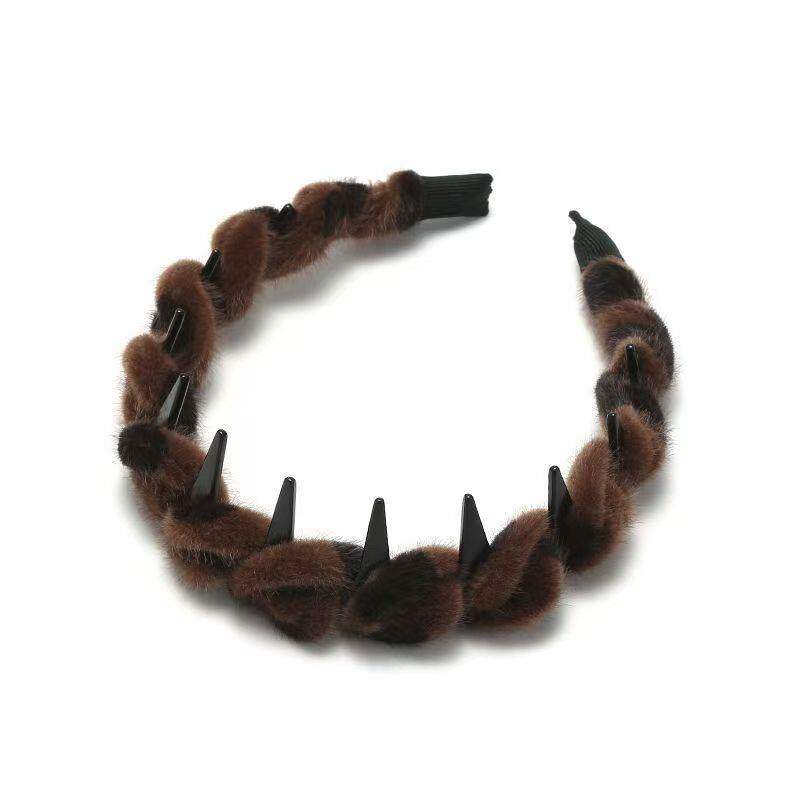 新款复古豹纹带齿毛绒发箍女防滑洗脸发卡化妆发饰头箍秋冬