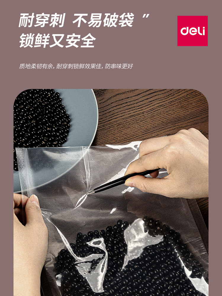 得力真空食品包装袋保鲜封口机密封网纹路袋家用抽气压缩塑封袋子