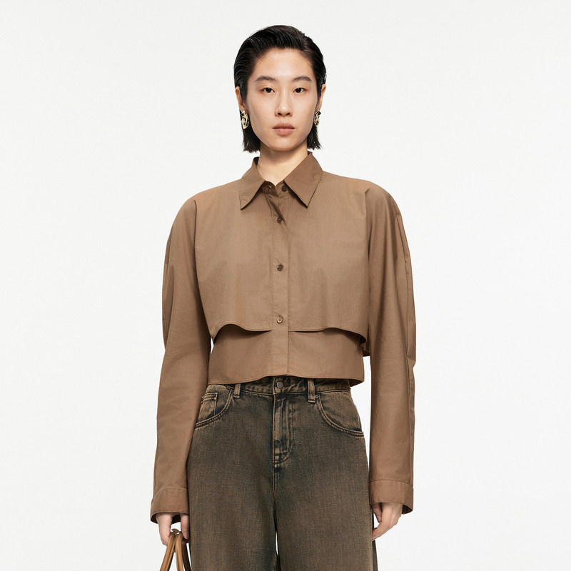 JNBY/江南布衣春秋衬衫短款设计感长袖棉质府绸宽松衬衣5O7215800