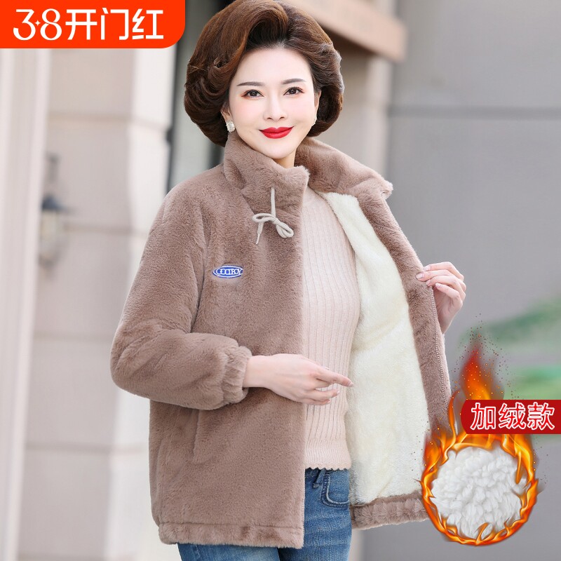 中年妈妈冬装加绒加厚水貂绒外套中老年女装洋气棉衣高贵保暖棉袄