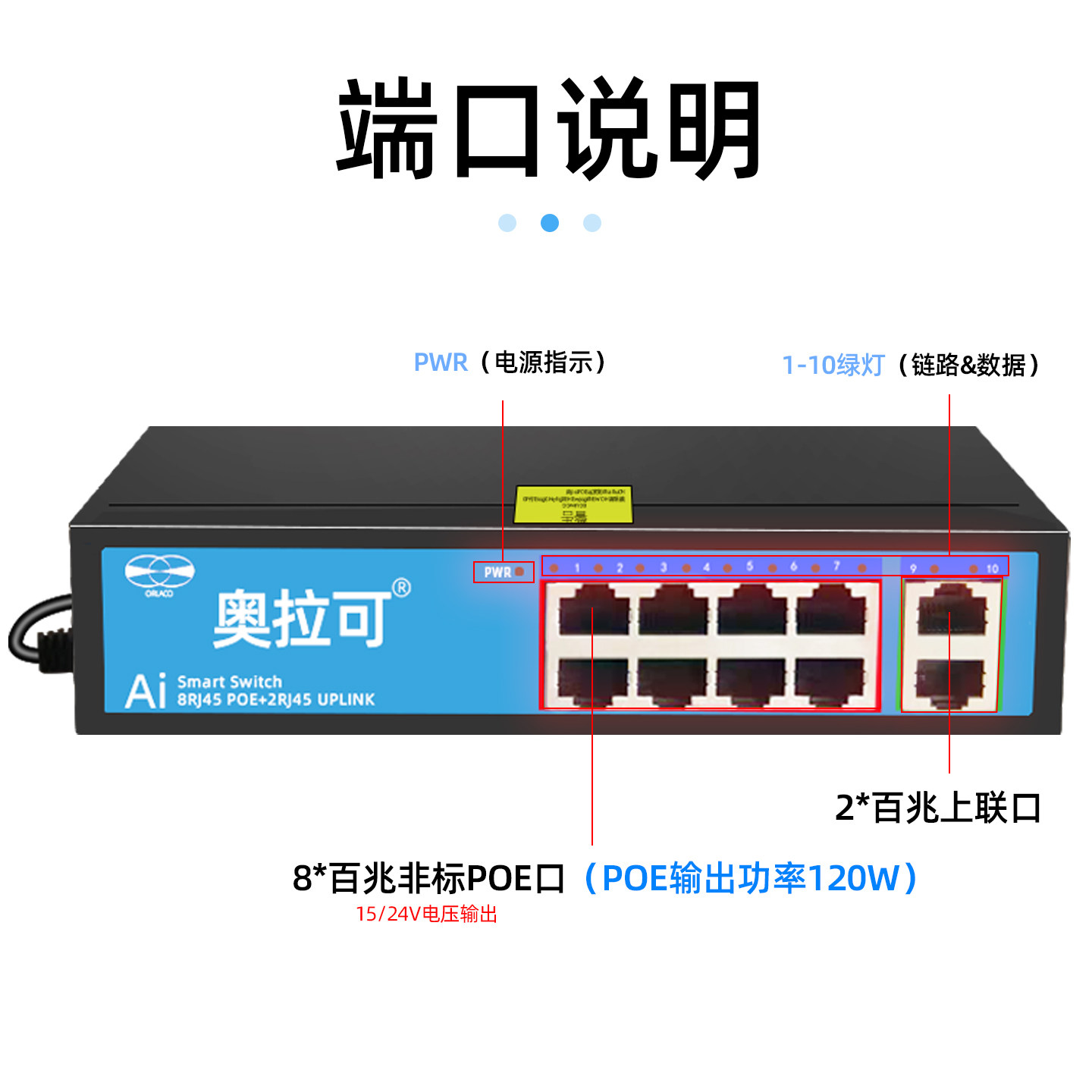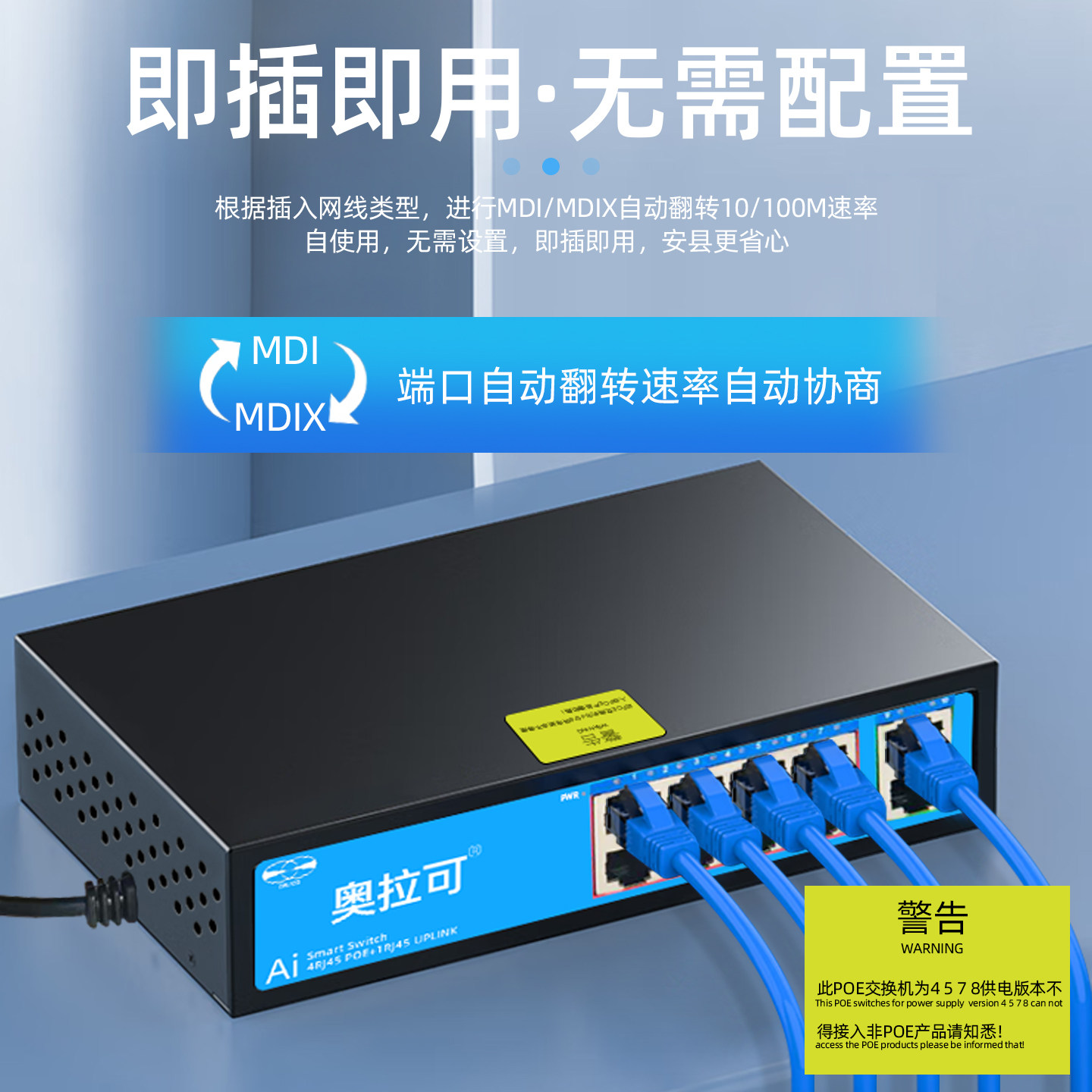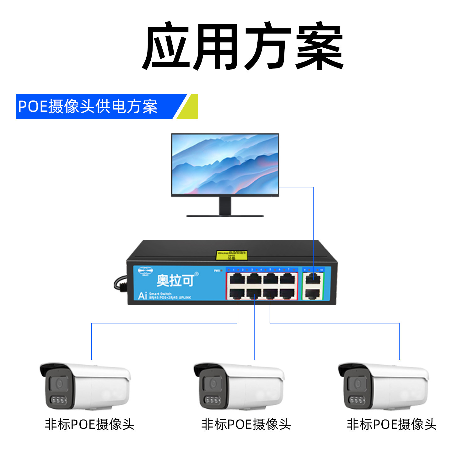 奥拉可非标准POE交换机6口10口百兆15V/24V监控楼宇对讲专用