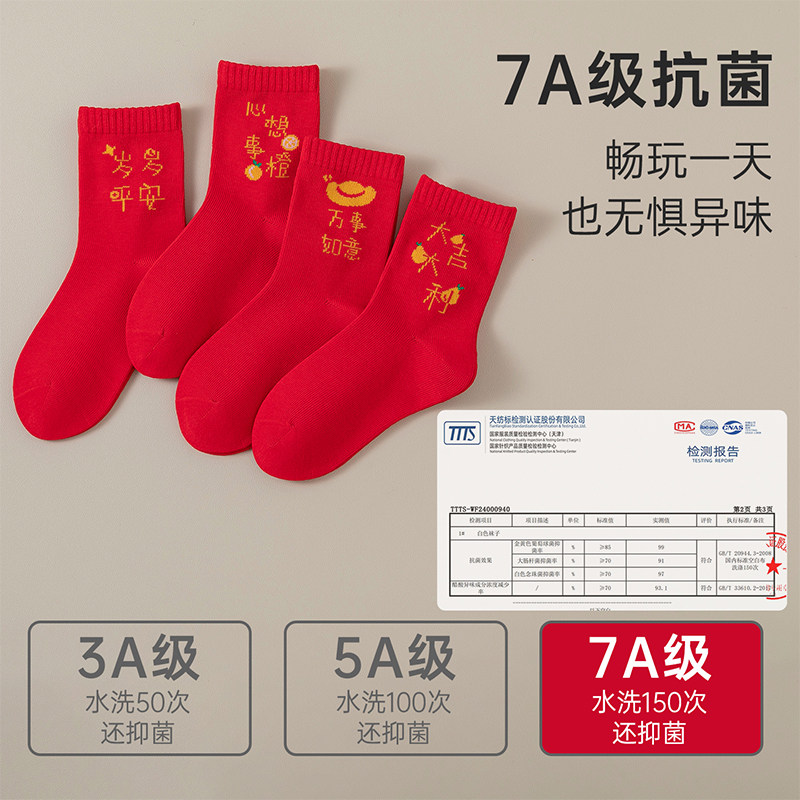 儿童袜子秋冬新年袜女童本命年中筒袜棉袜宝宝冬季大童袜新年红