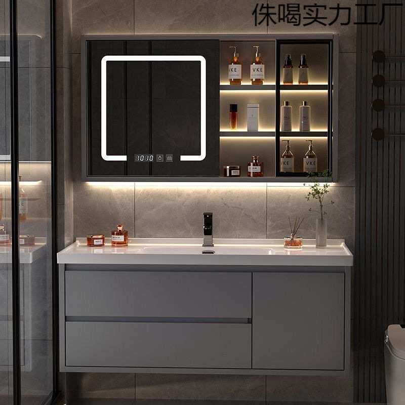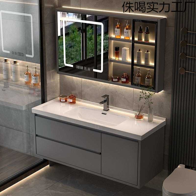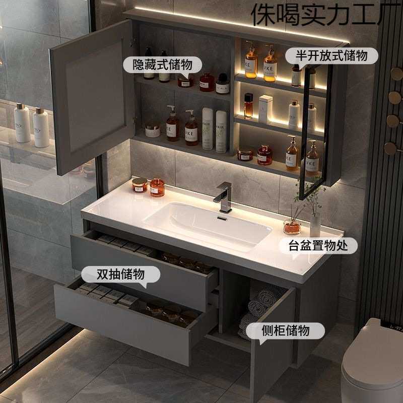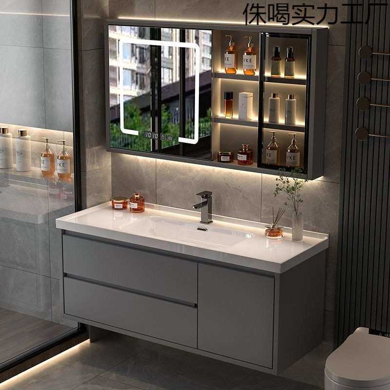 浴室柜陶瓷一体盆洗脸手盆洗漱台镜柜一体岩板一体盆卫生间轻奢